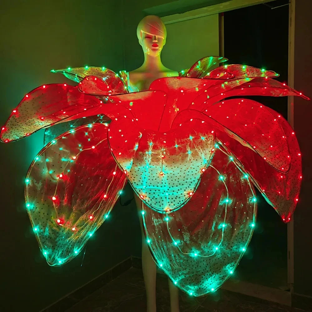 Colorful Flower Opening Dress Full Color LED Petal Skirt Blossom Long Dress Dance Big Swing...