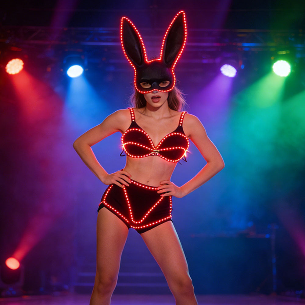 LED Dress for Women Sexy Rabbit Ears One-Size Ballroom & Robot Performance Suit Western Style Stage Wear for Parties