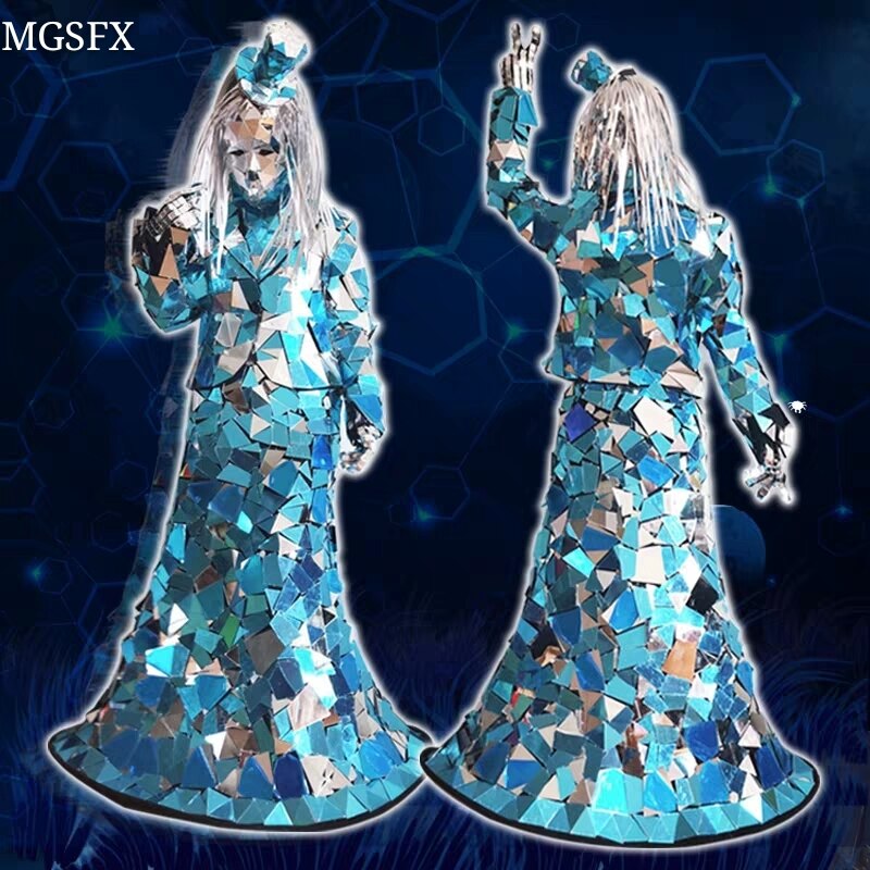 Women's Mirror Costumes Long Sleeve Slimming Dress Festival Celebration Suits Party Show Skirts