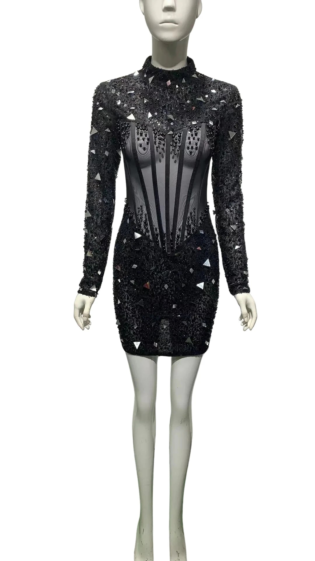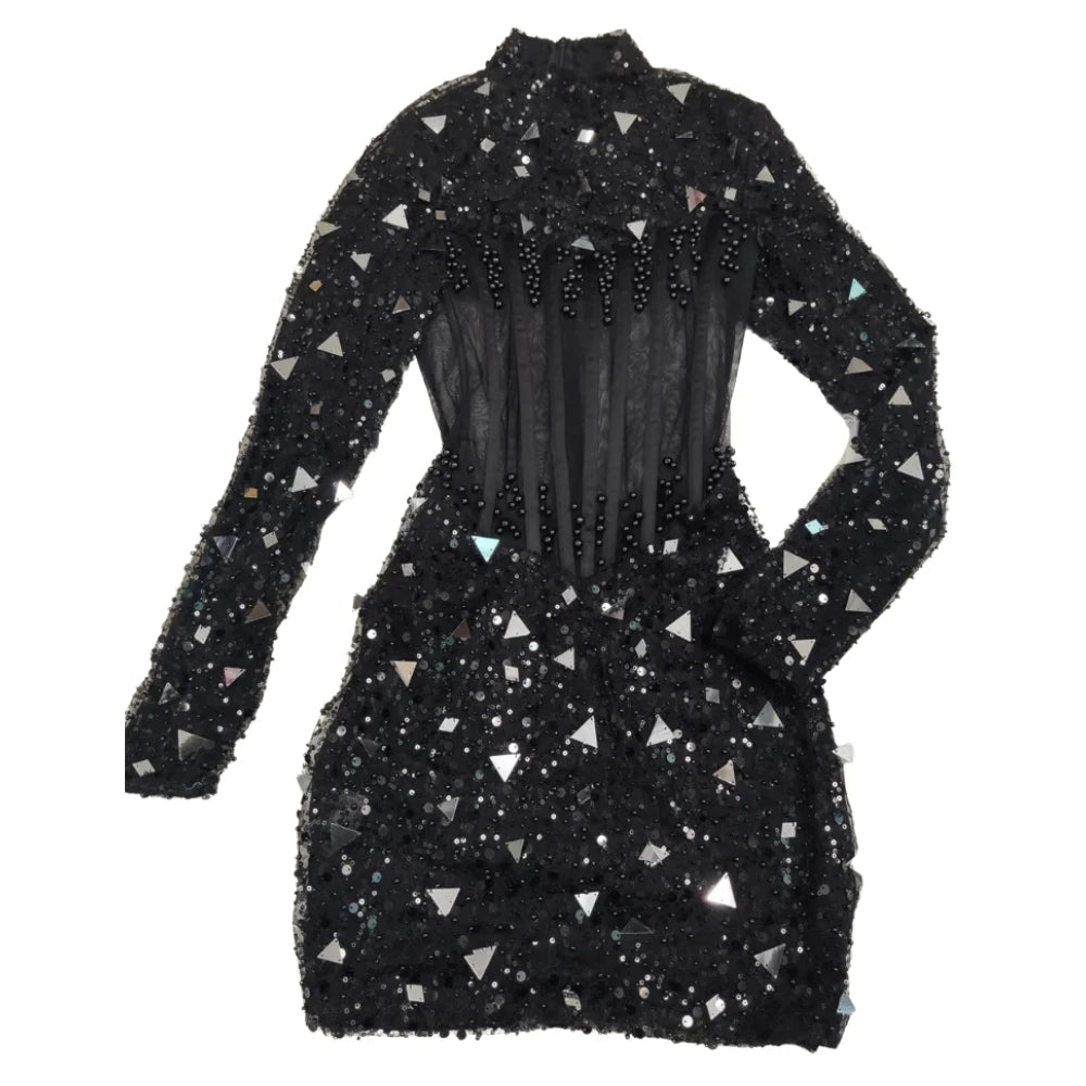 2023 New Arrival Womens Performace Long Sleeve Dress Female Beaded Costumes Nighclub Show Dance Stage