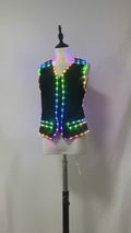 LED Light-Up Black Sleeveless Vest: Colorful Glowing Party Outfit for Night Events Festivals