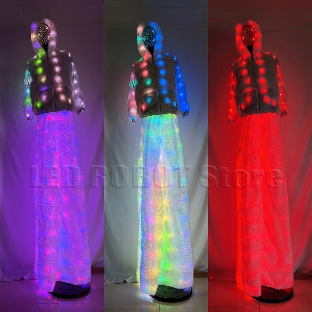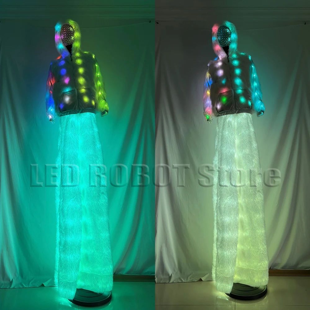 Light-Up Stilts & Fur Pants Set|Multi-Color LED Themed Party Costume