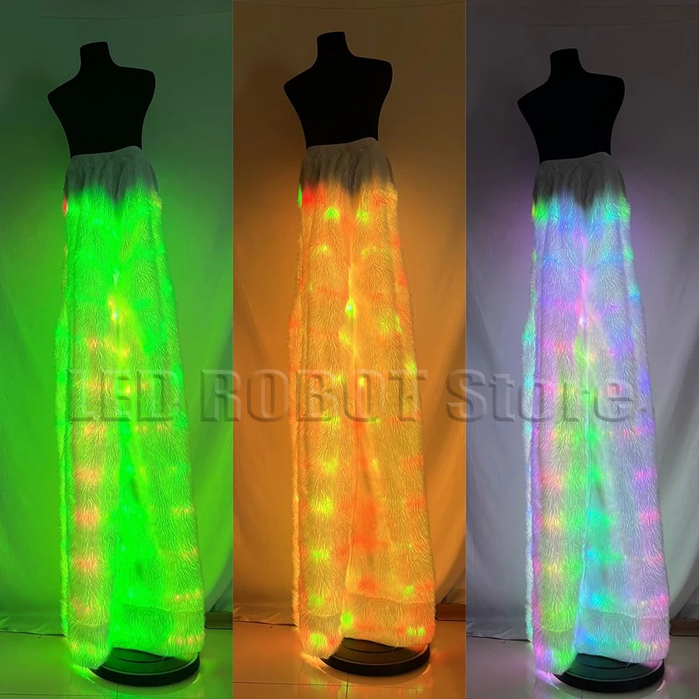 LED Stilts Fur Pants Light-Up Plush Party Set Multi-Color Lighting Effect Eye-Catching Outfit for Themed Events