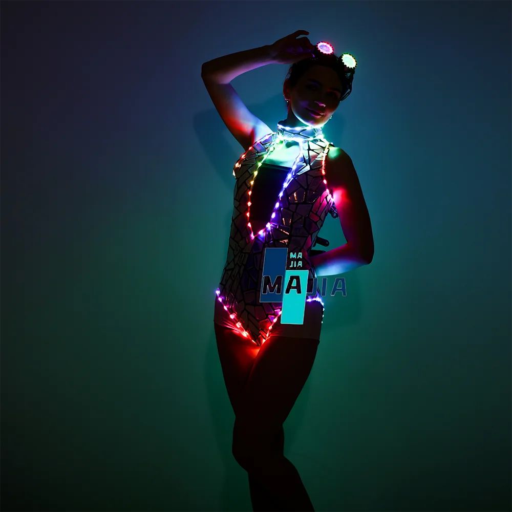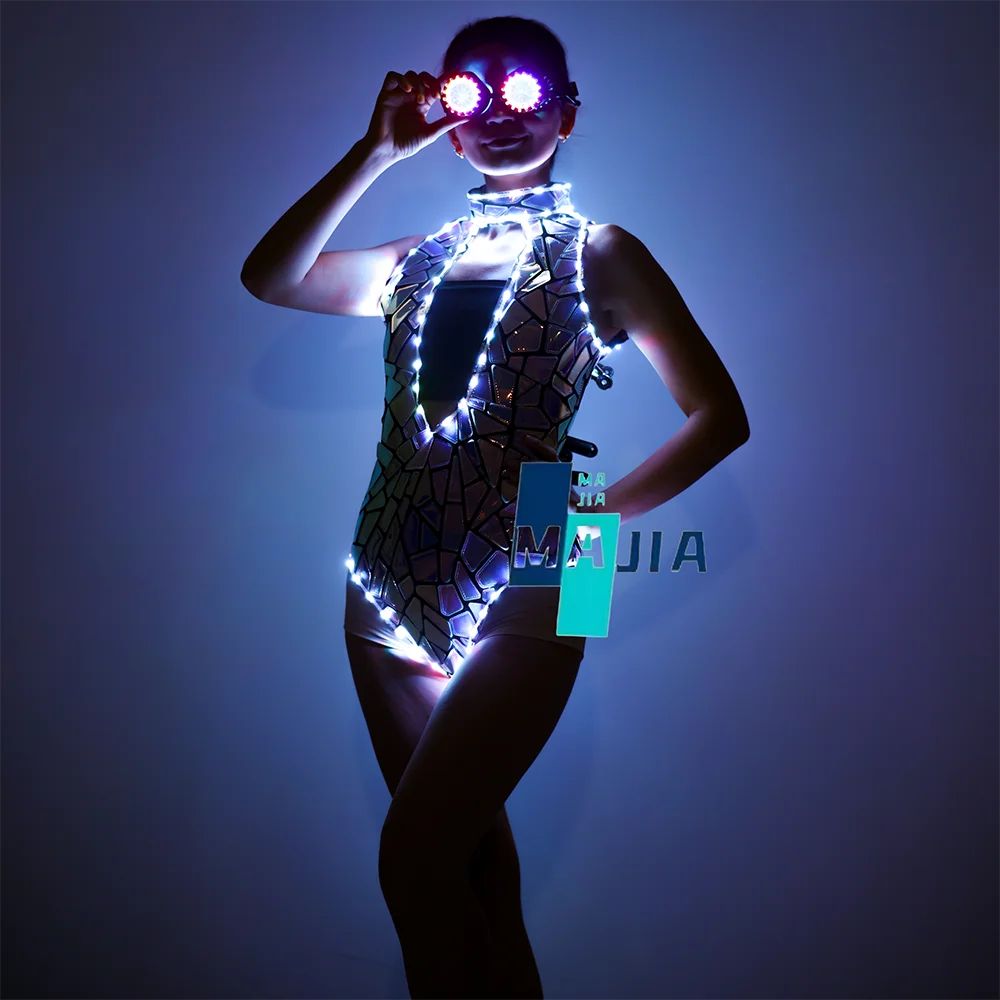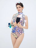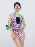 Mirror Glitter Silver Sleeveless PU Club Dress Sparkling Nightclub Party Gown Bodycon Evening Dance Wear for DJ Dancer Bar