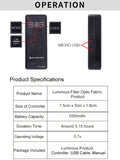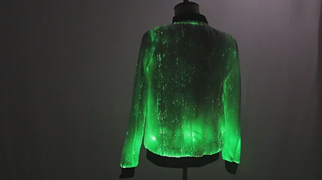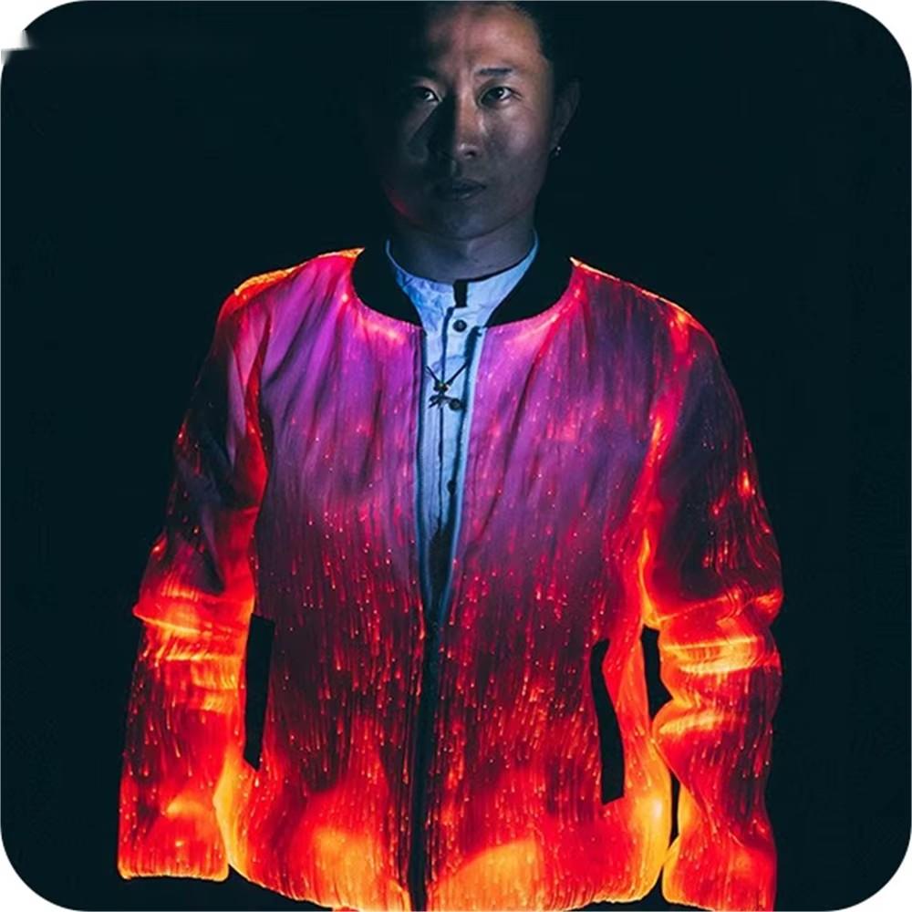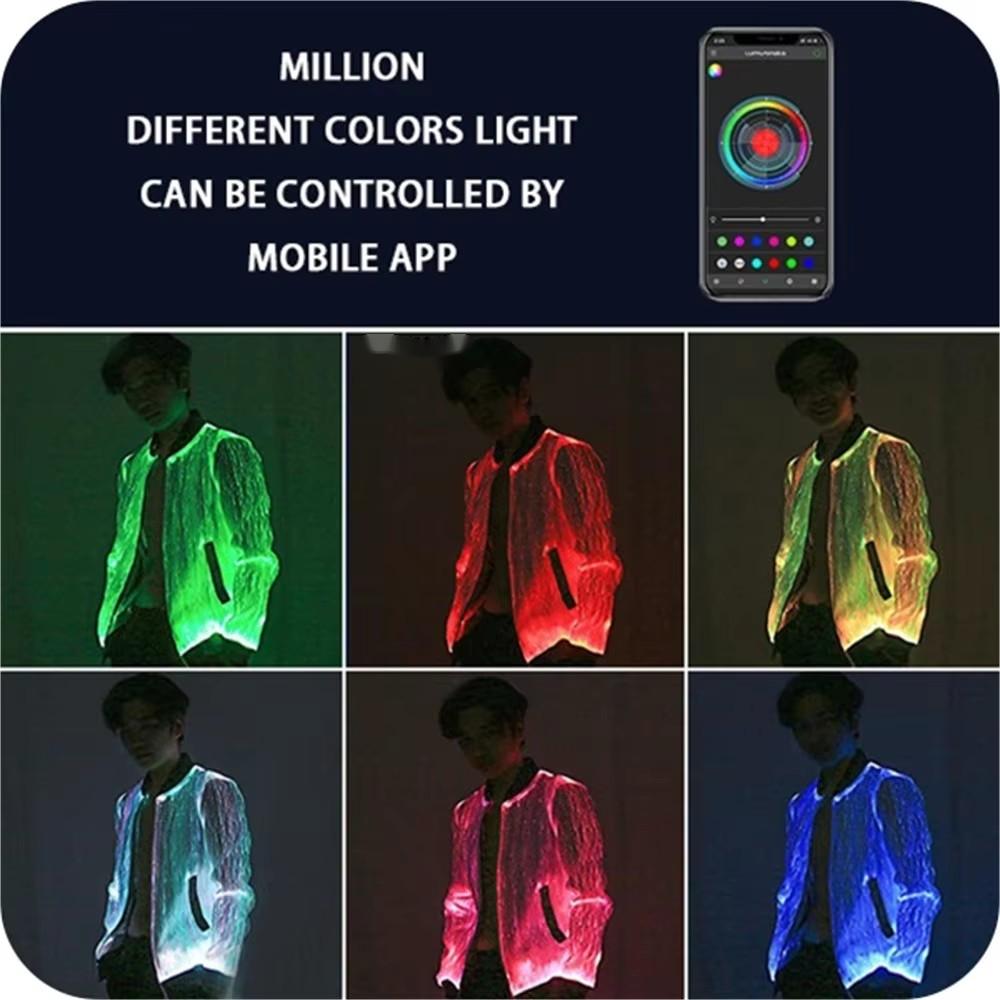 Dynamic 7-Color Fiber Optic Display: Hundreds of delicate, flexible fiber optic strands are integrated into the jacket's design. These strands carry light with incredible clarity, allowing you to cycle through seven vivid colors or set a single brilliant hue. The effect is a smooth, sophisticated, and radiant glow that emanates from within the fabric itself.