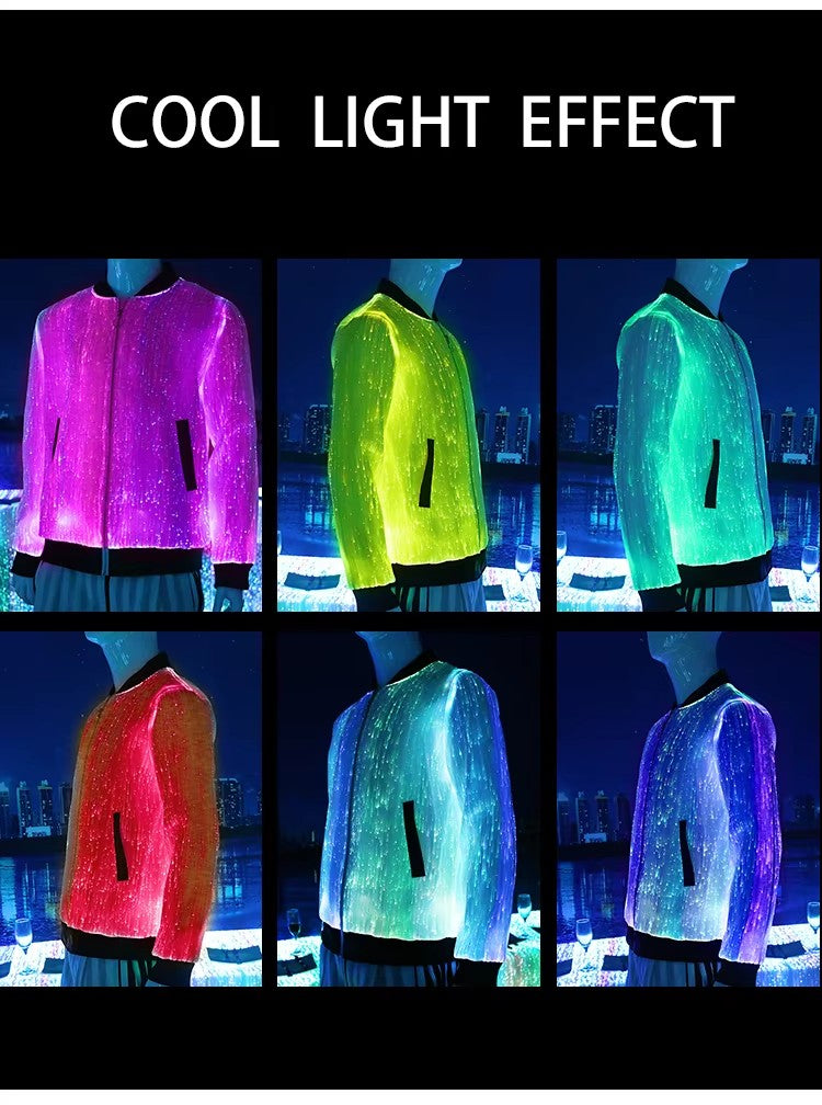 Unisex Luminous Fiber Optic Zip Jacket 7-Color Lights Dance Costumes Formal Blazer Suit Design Adults Ballroom