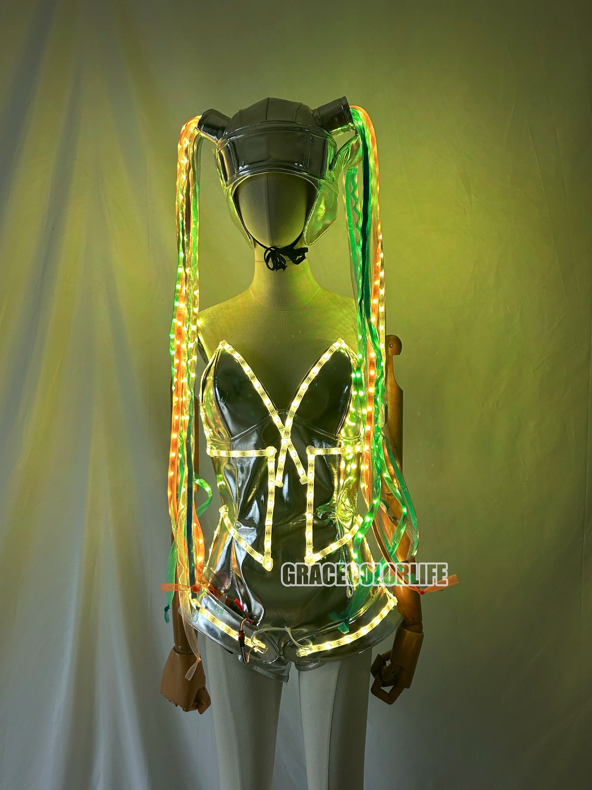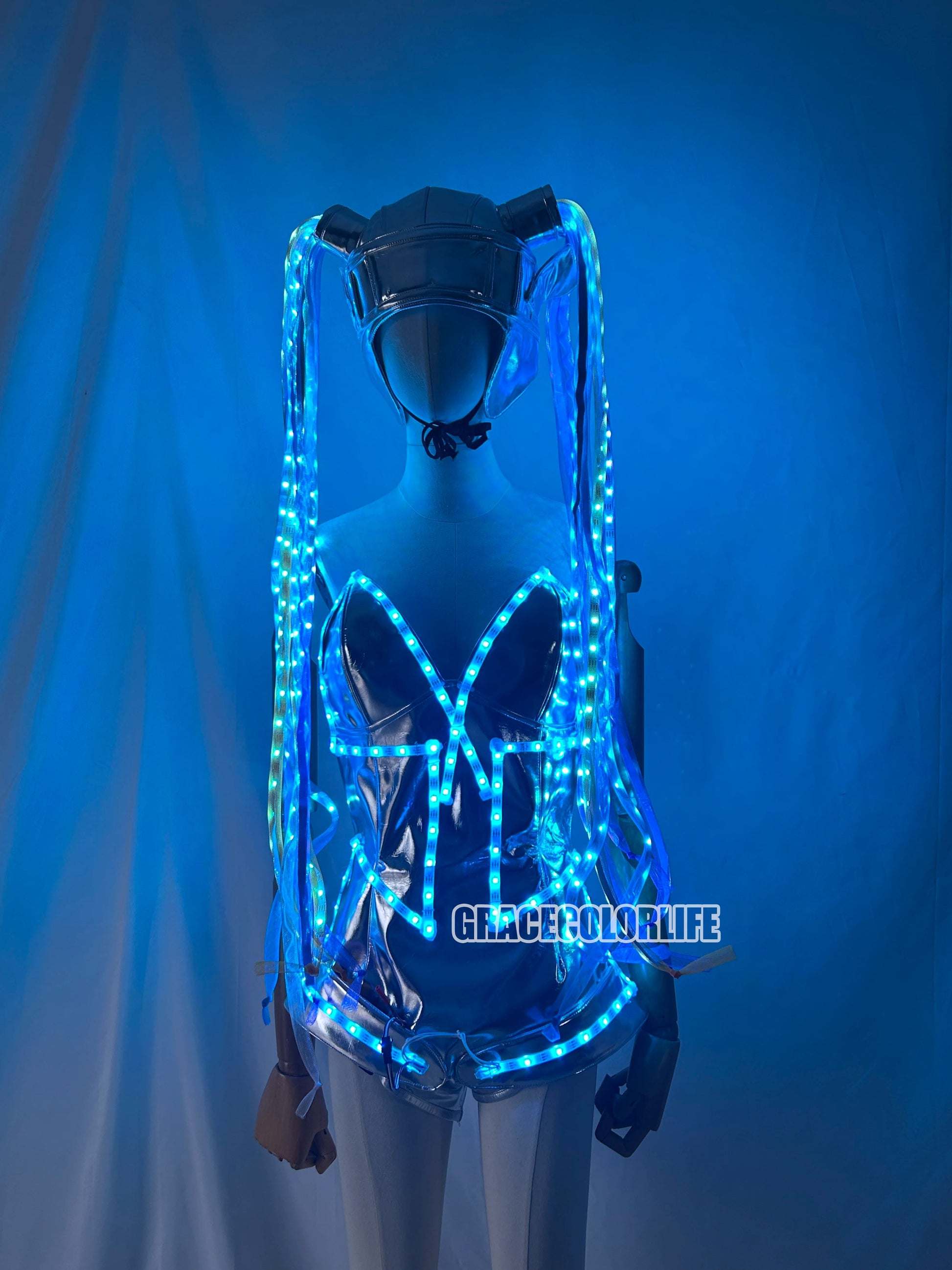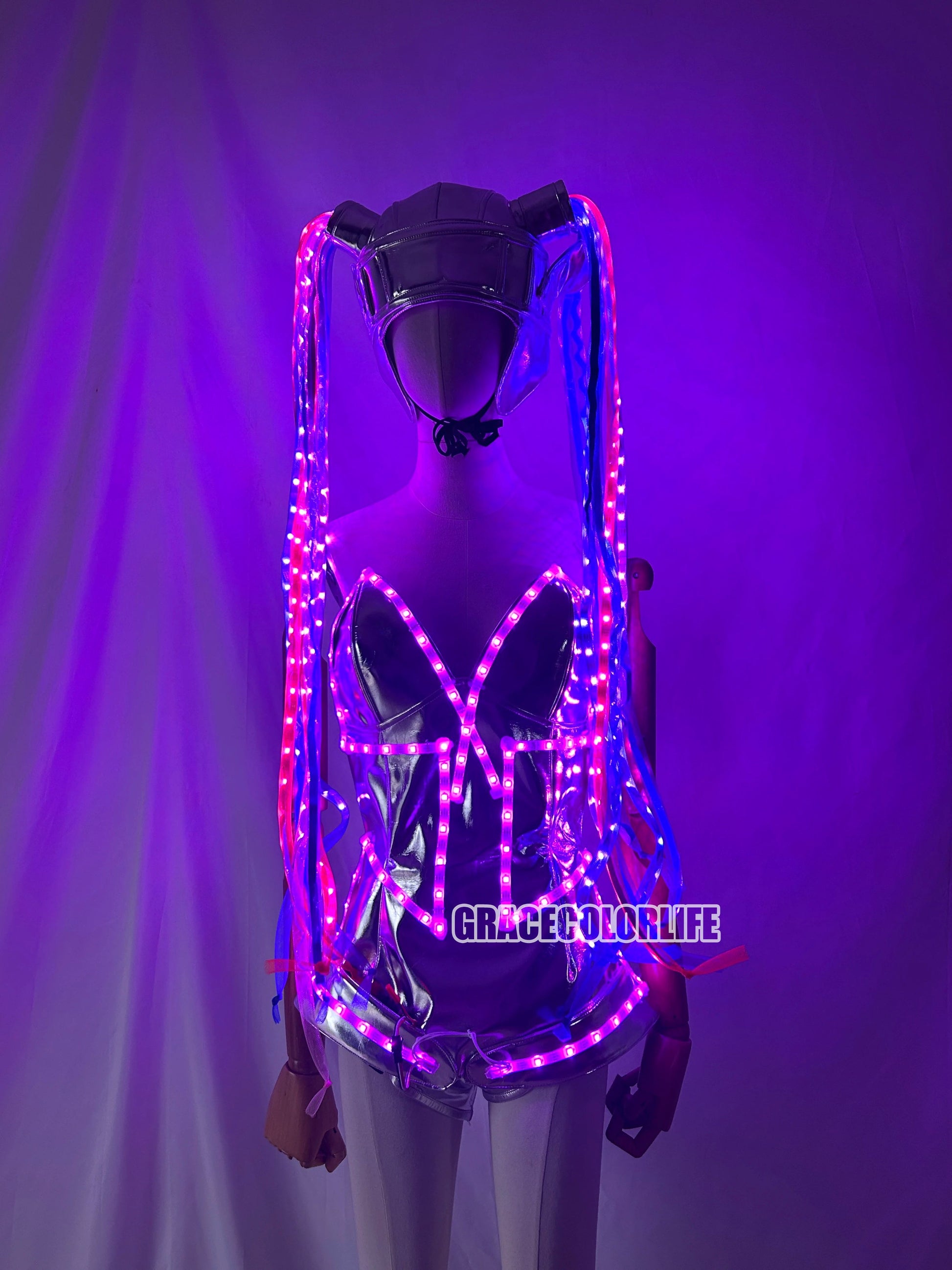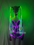 LED Luminous Women Costume Fantasy Color Change Jumpsuit Long Braids Masquerade Stage DS Performance Clothing Bar DJ Costumes