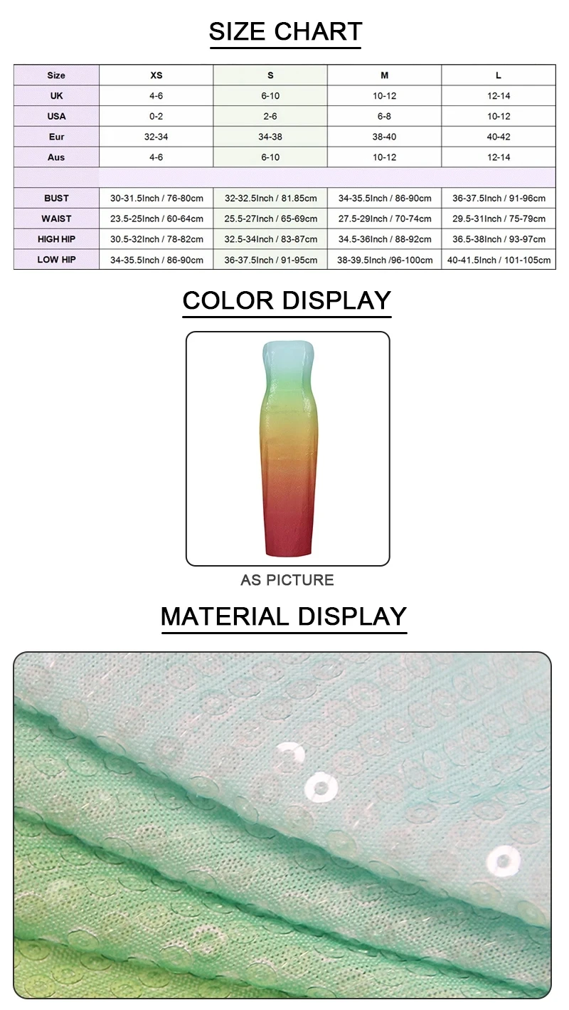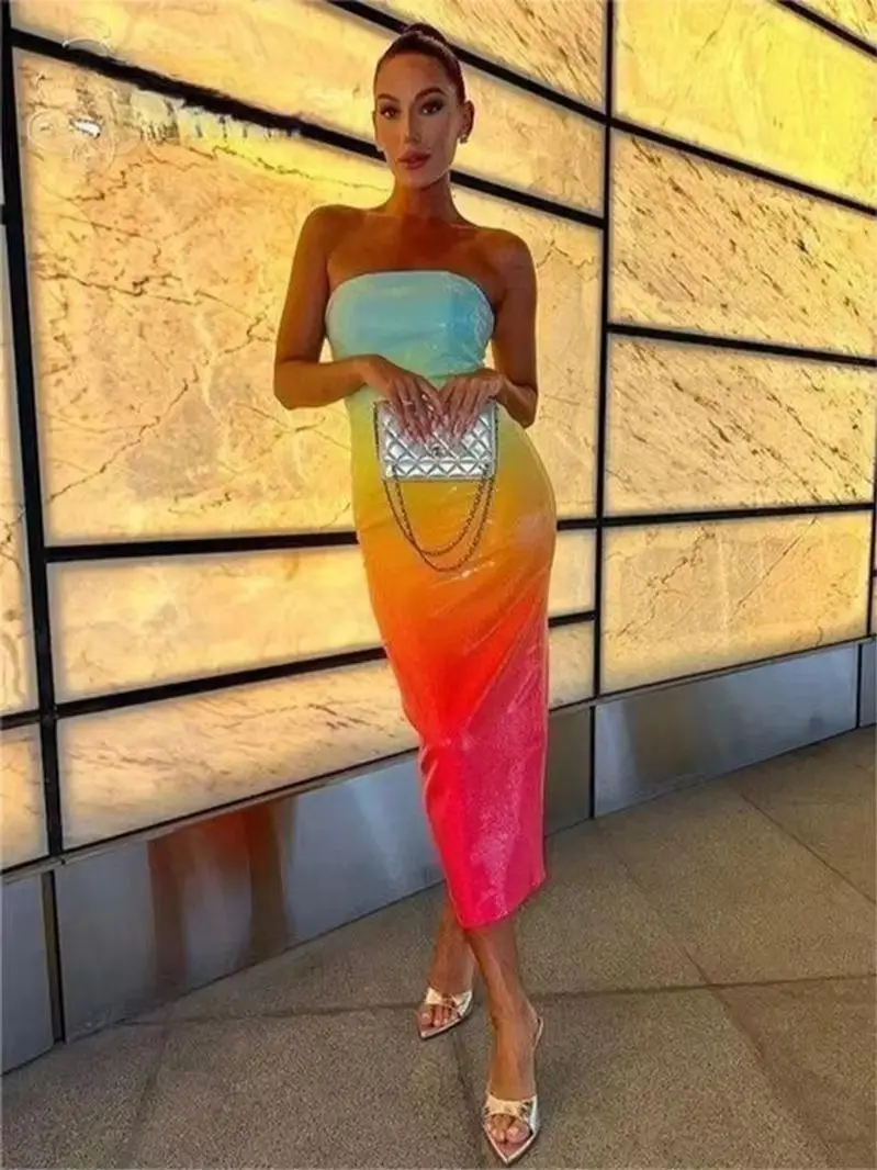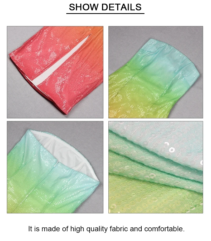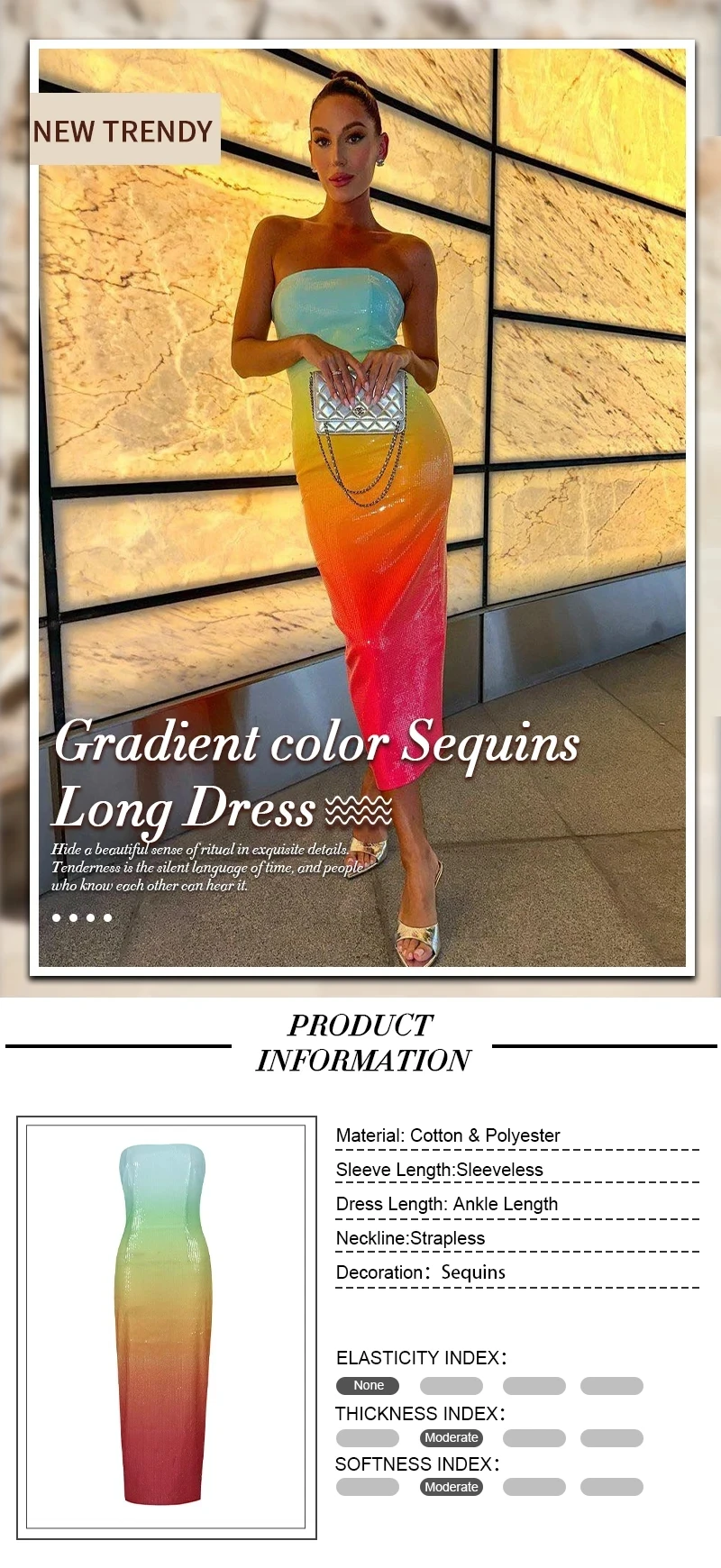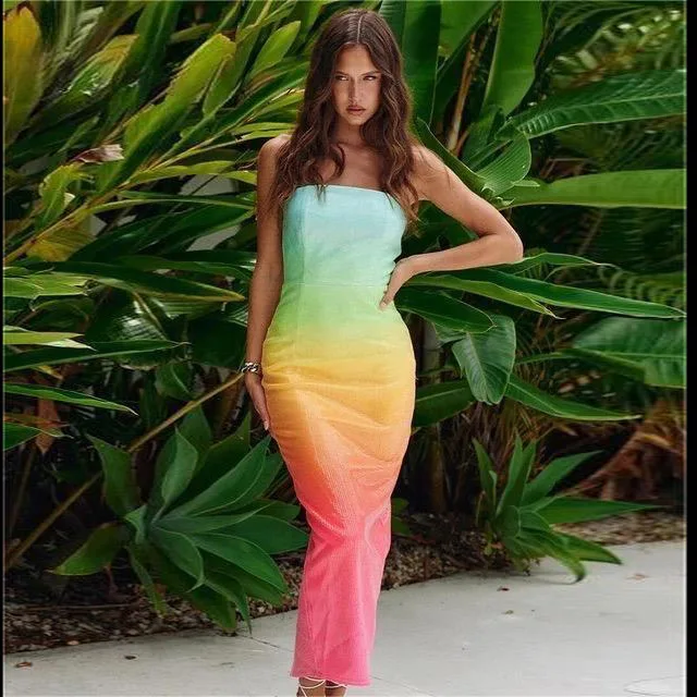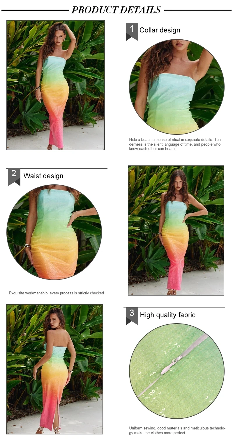 Ladies Gradient Sequins Luxury Dress Fresh Tropical Style Sunset Gradient Dress Woman costume