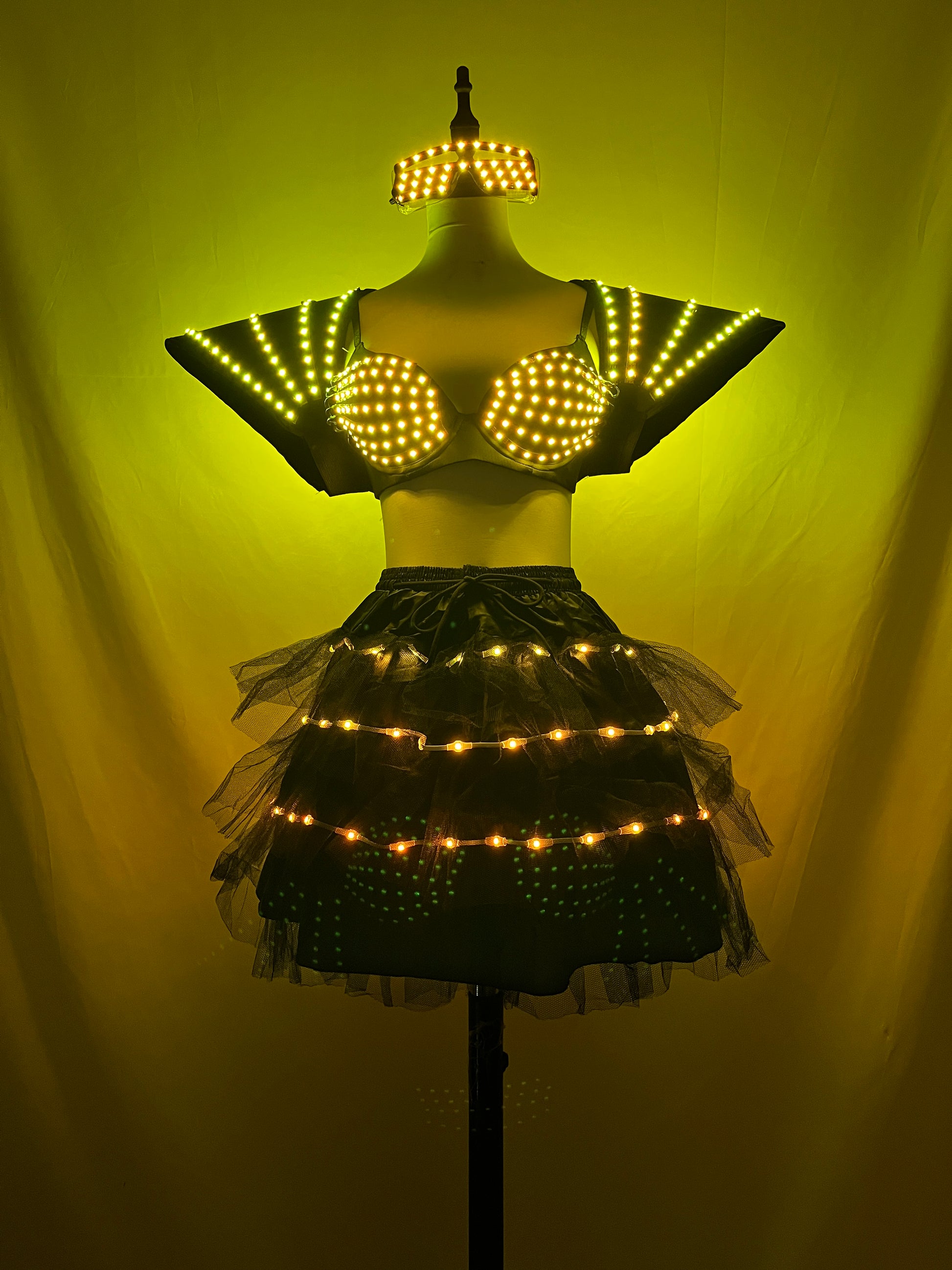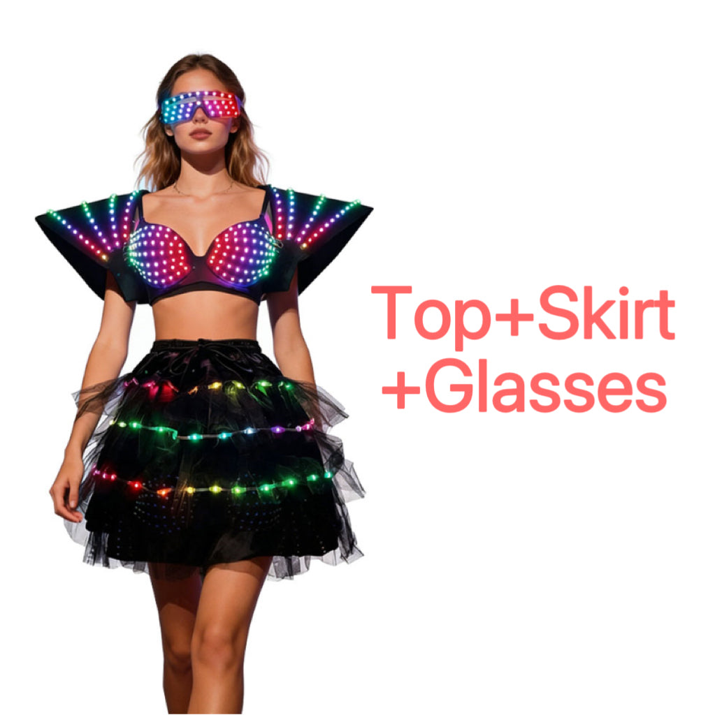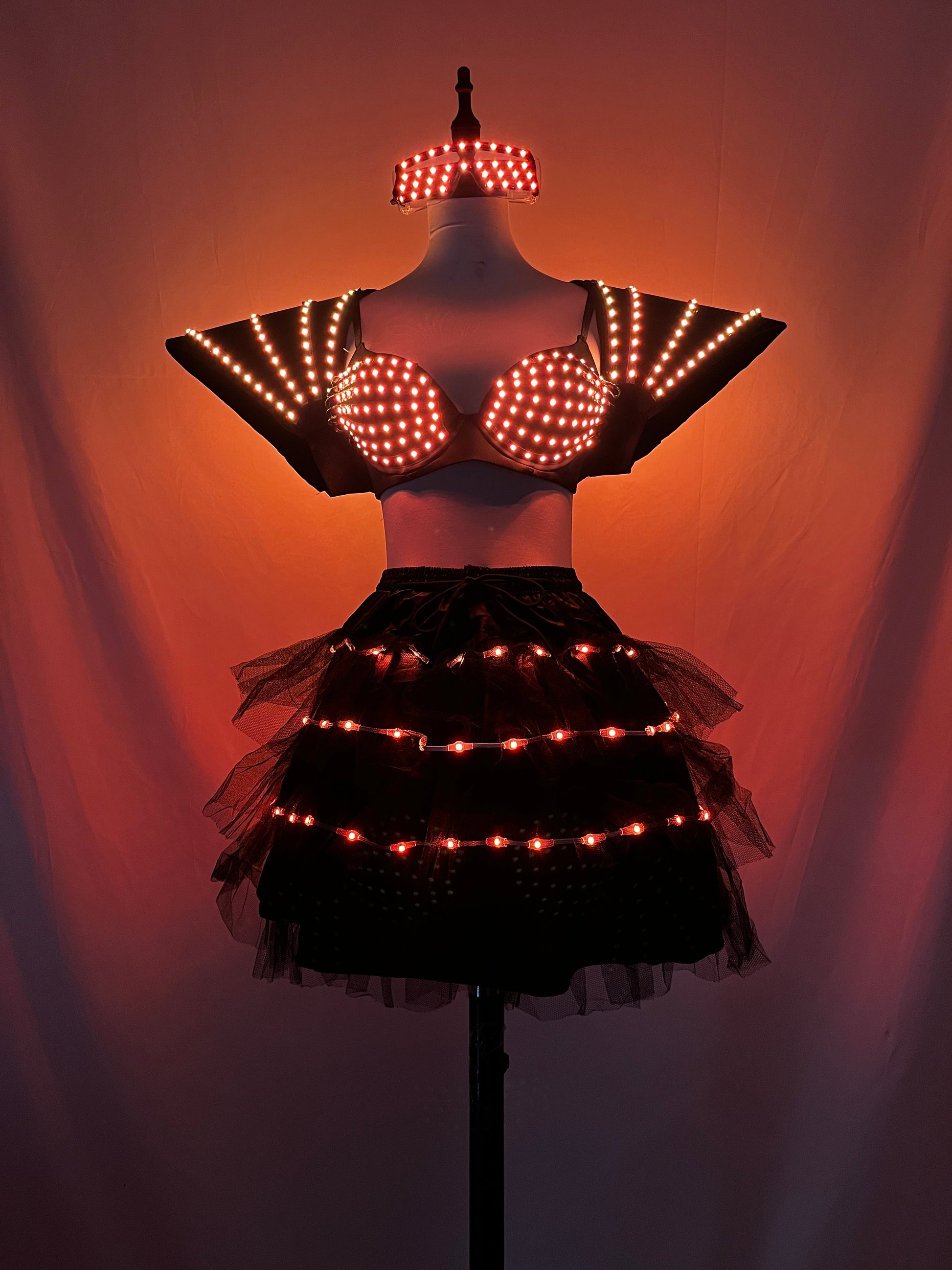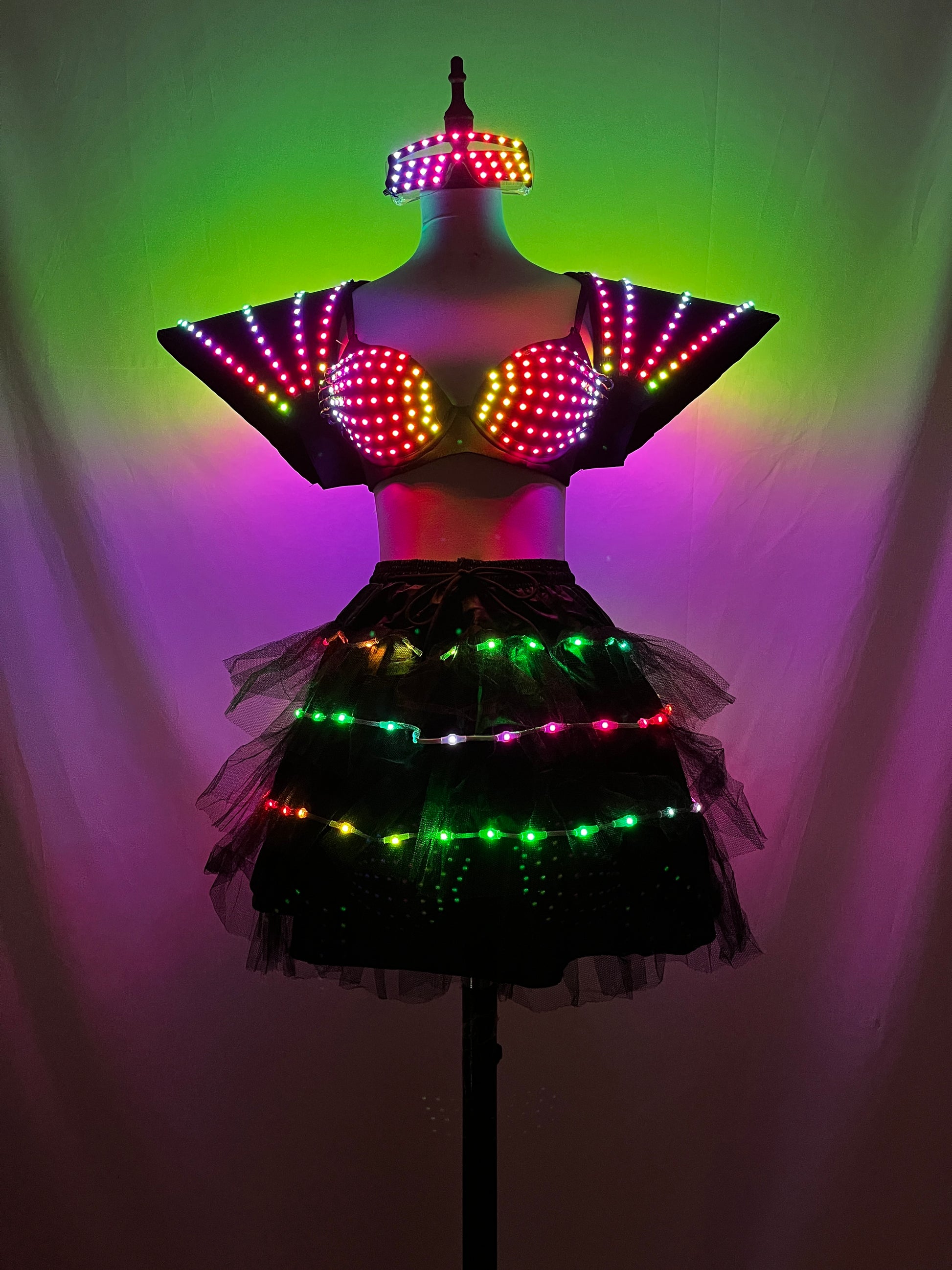 LED Light-Up Cyberpunk Rave Costume: Neon Wing & Tutu Outfit for Club Parties & Performances