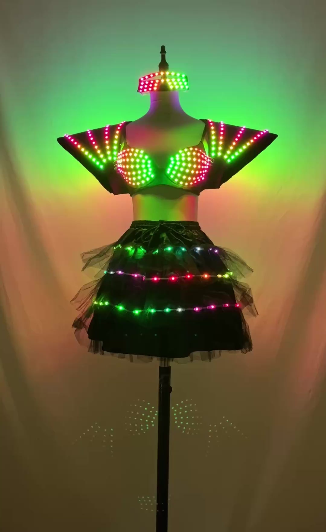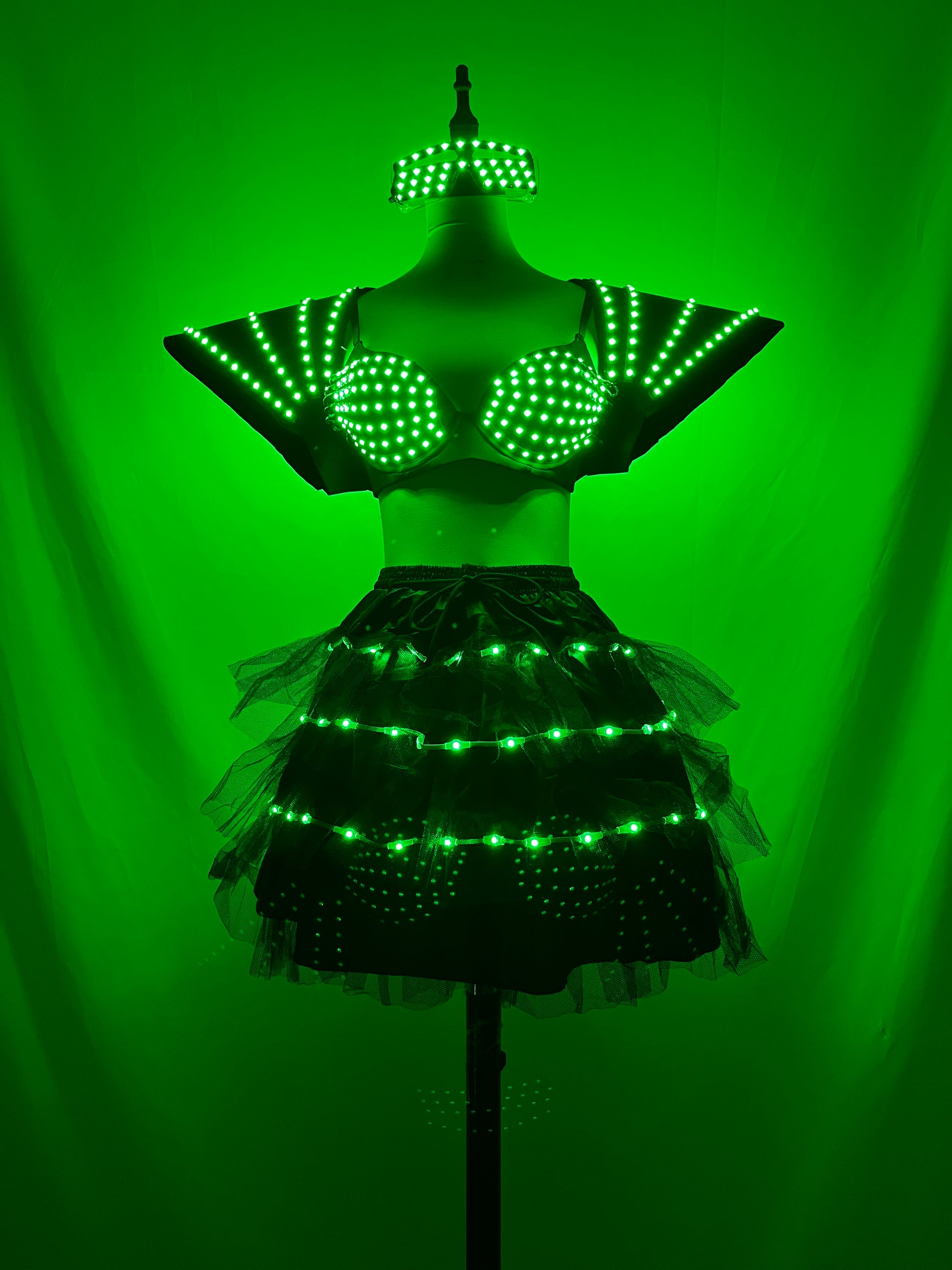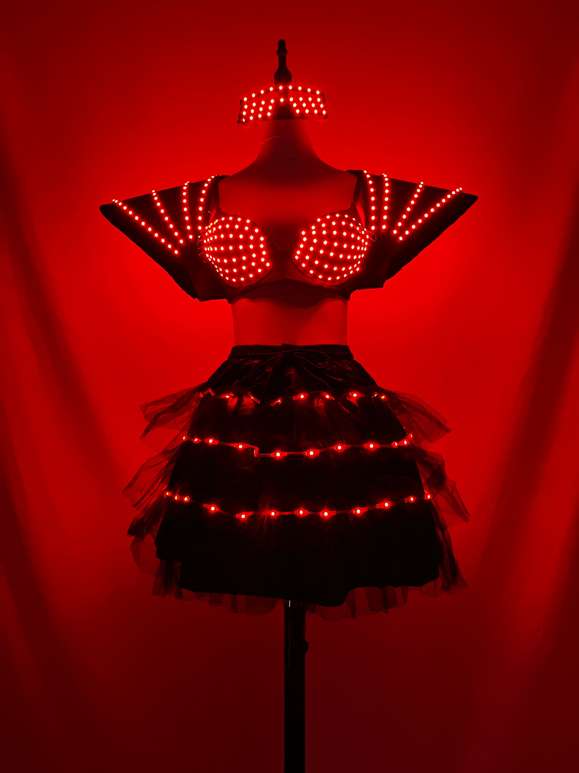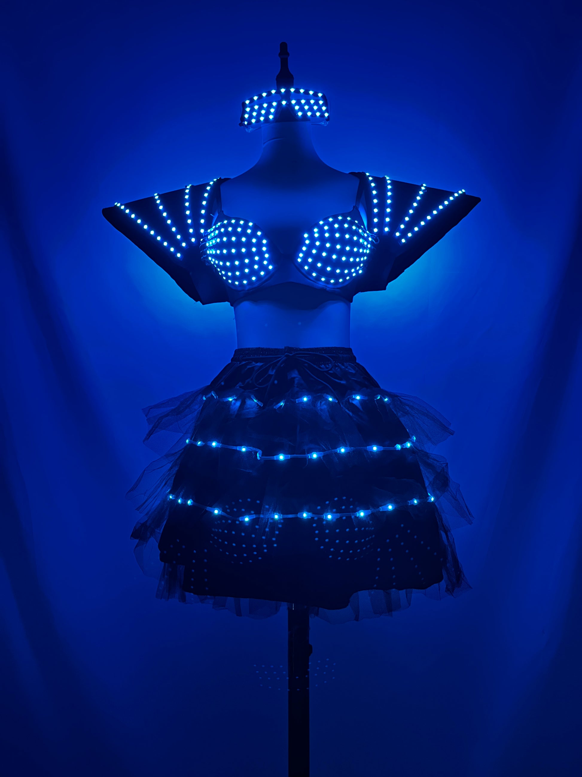 LED Light-Up Cyberpunk Rave Costume: Neon Wing & Tutu Outfit for Club Parties & Performances