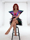 Eye-Catching Cyberpunk Design – The costume features a futuristic winged silhouette combined with a playful tutu skirt, blending avant-garde fashion with rave culture to create a truly unique and memorable look.