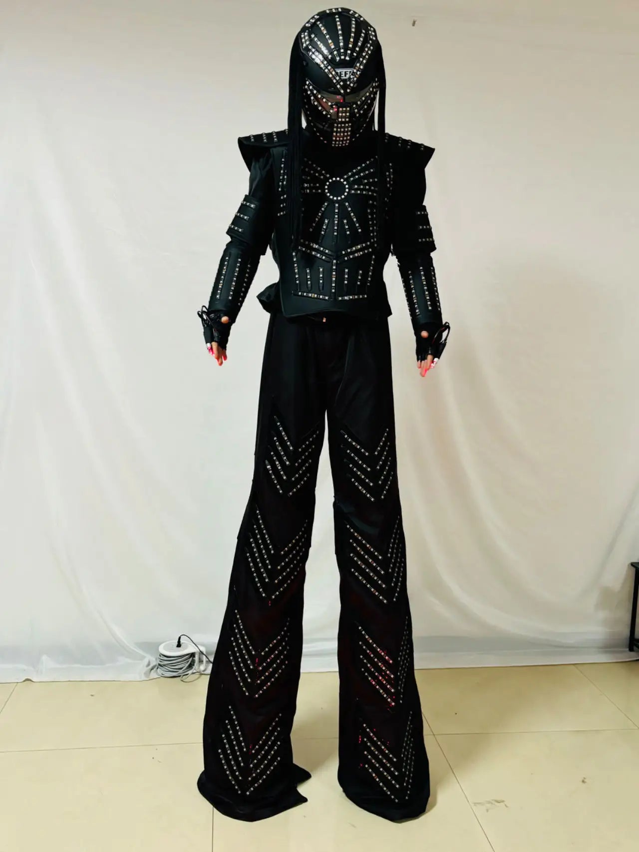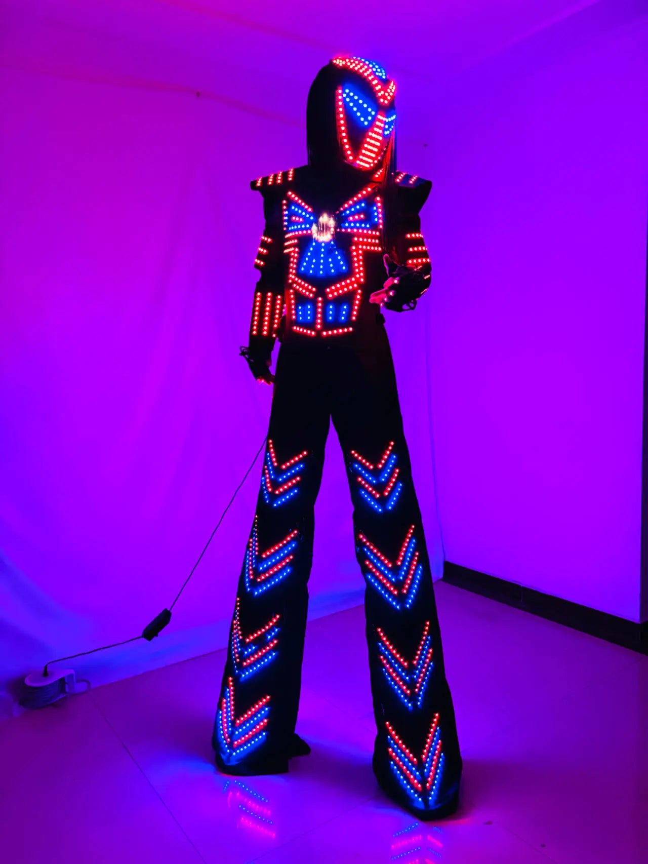 3. Includes: led helmet, Jacket, long pants, laser gloves,by remote control;