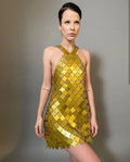 Strike Gold & Silver: The Metallic Disc Halter Mini Dress