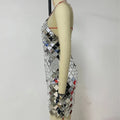 Dazzling Metallic Disc Construction: The entire dress is crafted from shimmering square discs that create a captivating chainmail effect. These reflective surfaces catch and play with light, ensuring you become the luminous focal point of any evening.