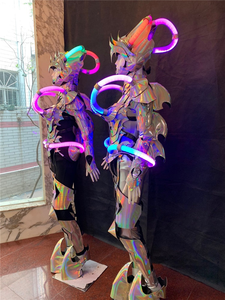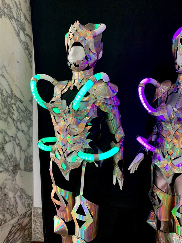 robot suit women wear luminous armor bodysuit glowing outfit show cloth
