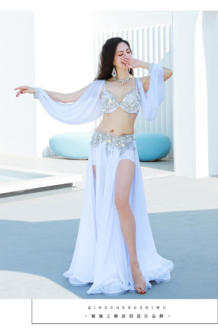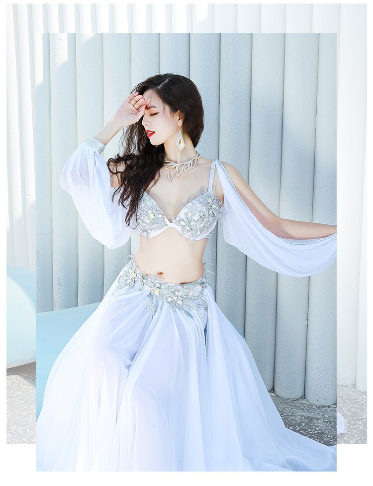 Chiffon Long Sleeves+Bra+Long Skirt Competition Carnival Festival Outfit Exotic Dancewear
