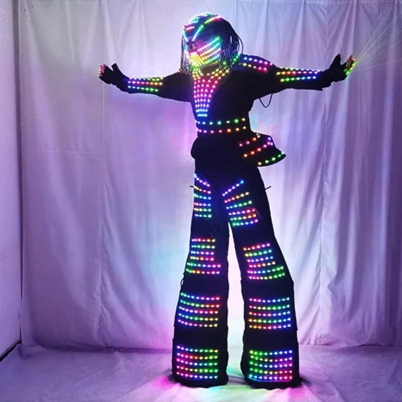 Colorful LED Luminous Robot Dance Wear Unisex Kryoman and David Guetta Stilt Suit for Adults for Performance and Events