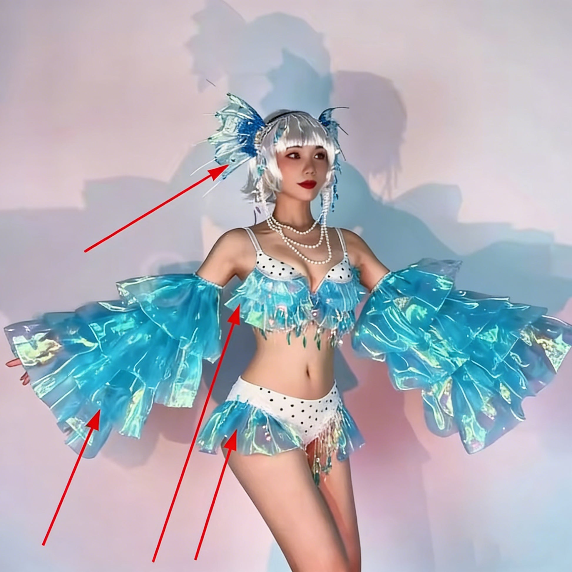 Dynamic Flared Sleeve Stage Effects – Layered sheer fabric and sequin craftsmanship allow sleeves to form wave-like light trails when dancing