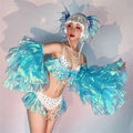 Dazzling Mermaid Show Costume - Full Sequin Bikini Ensemble with Glittering Flared Sleeves for Nightclub & Stage Performances