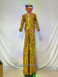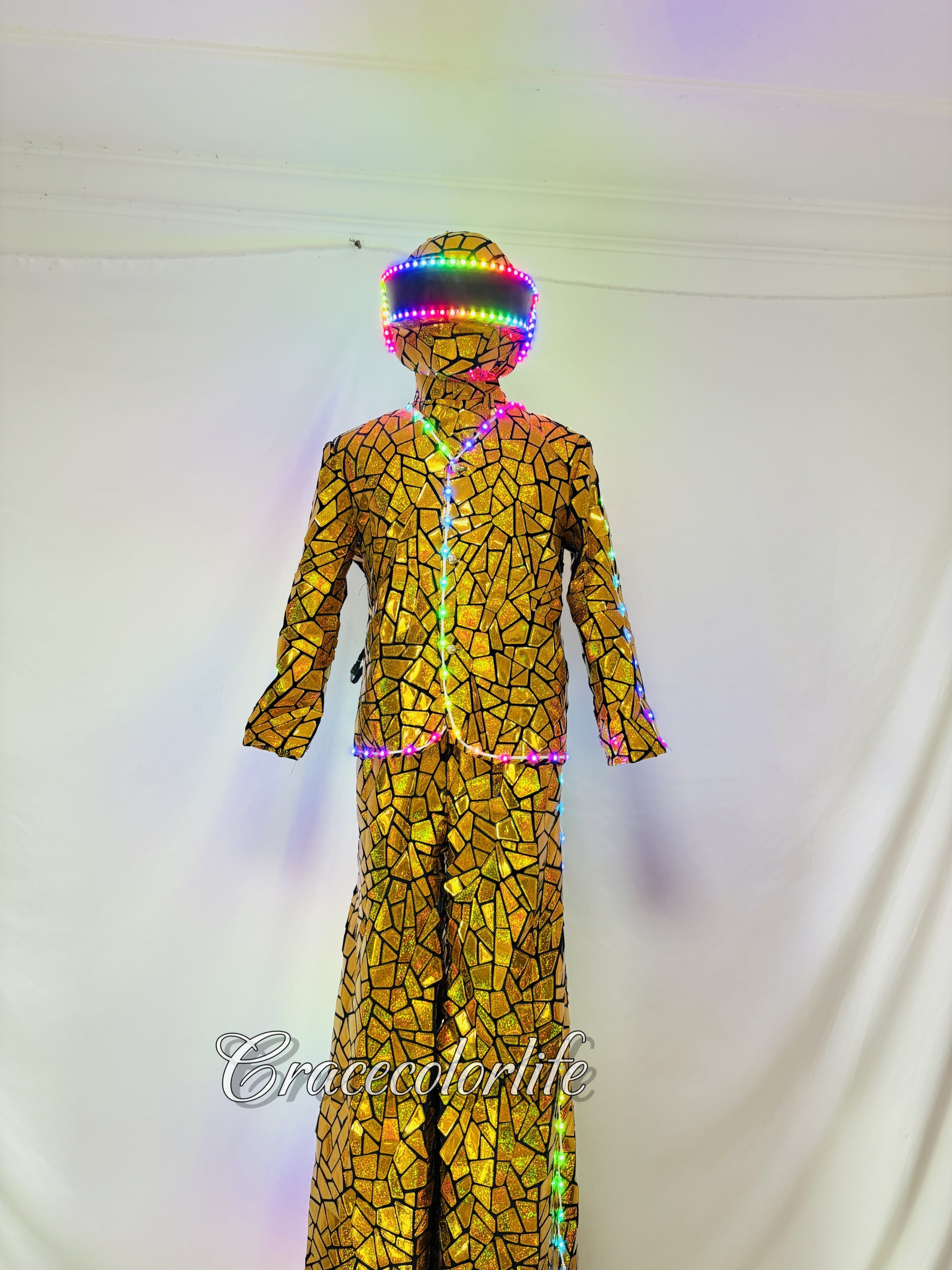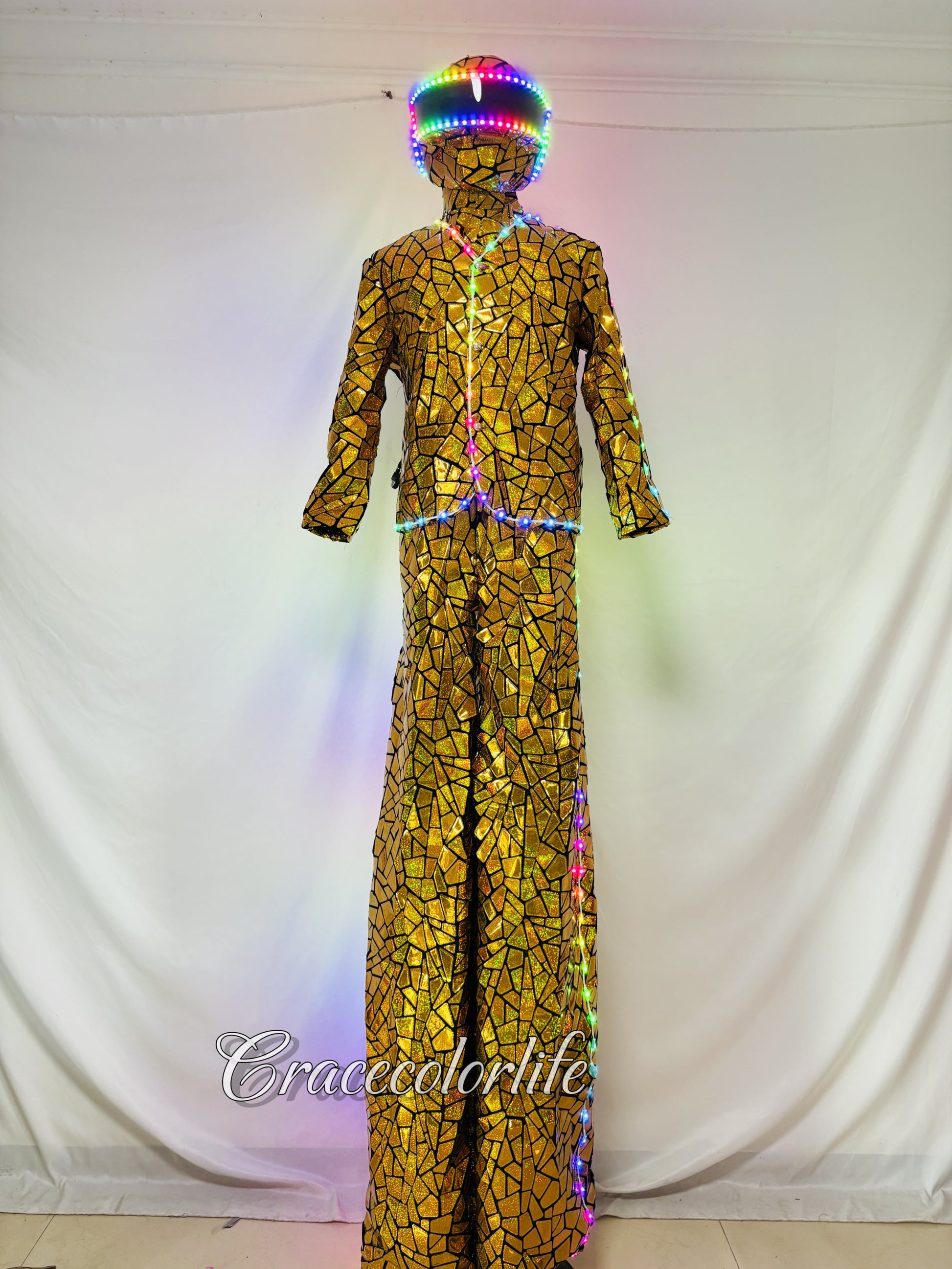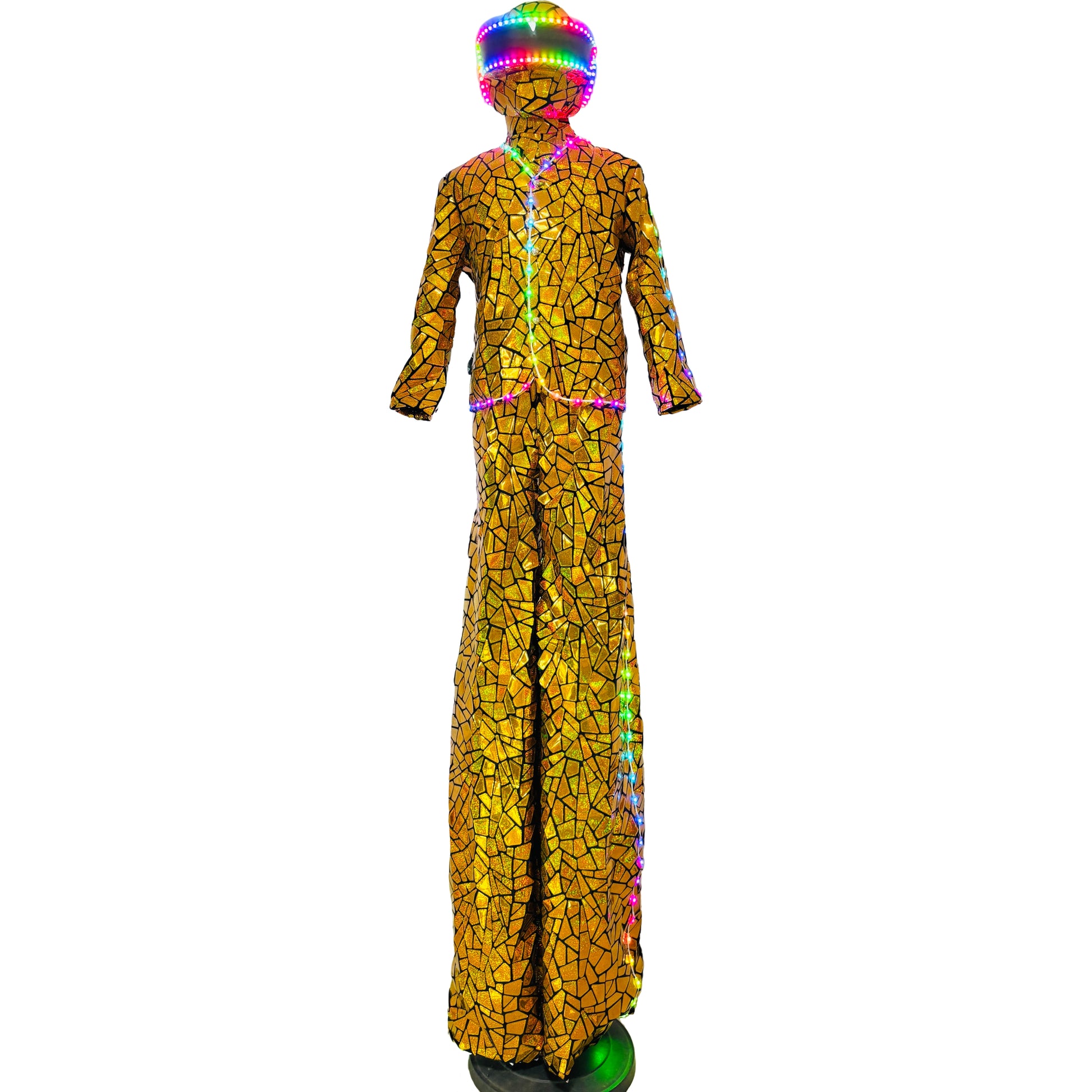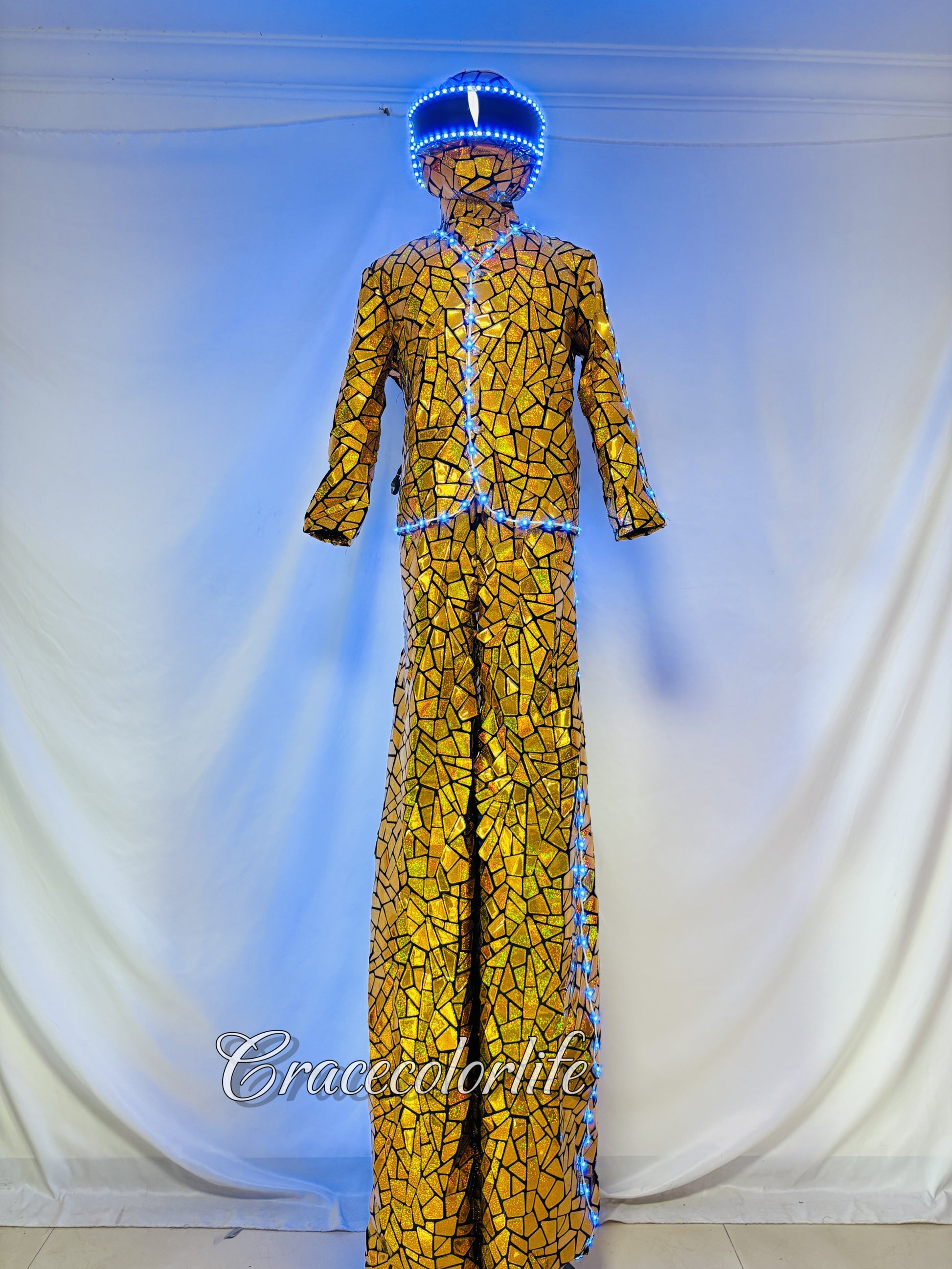 Earthradius LED Stilt Walker Mirror Men Robot Costume Gold Glass Modern Singer Outfit(LED MIRROR 3)