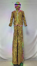 Silver LED Shiny Mirror Sequins Costume Lighting Special Design Qualified Sequins Outfit Stage Show DJ Bar Party Performance