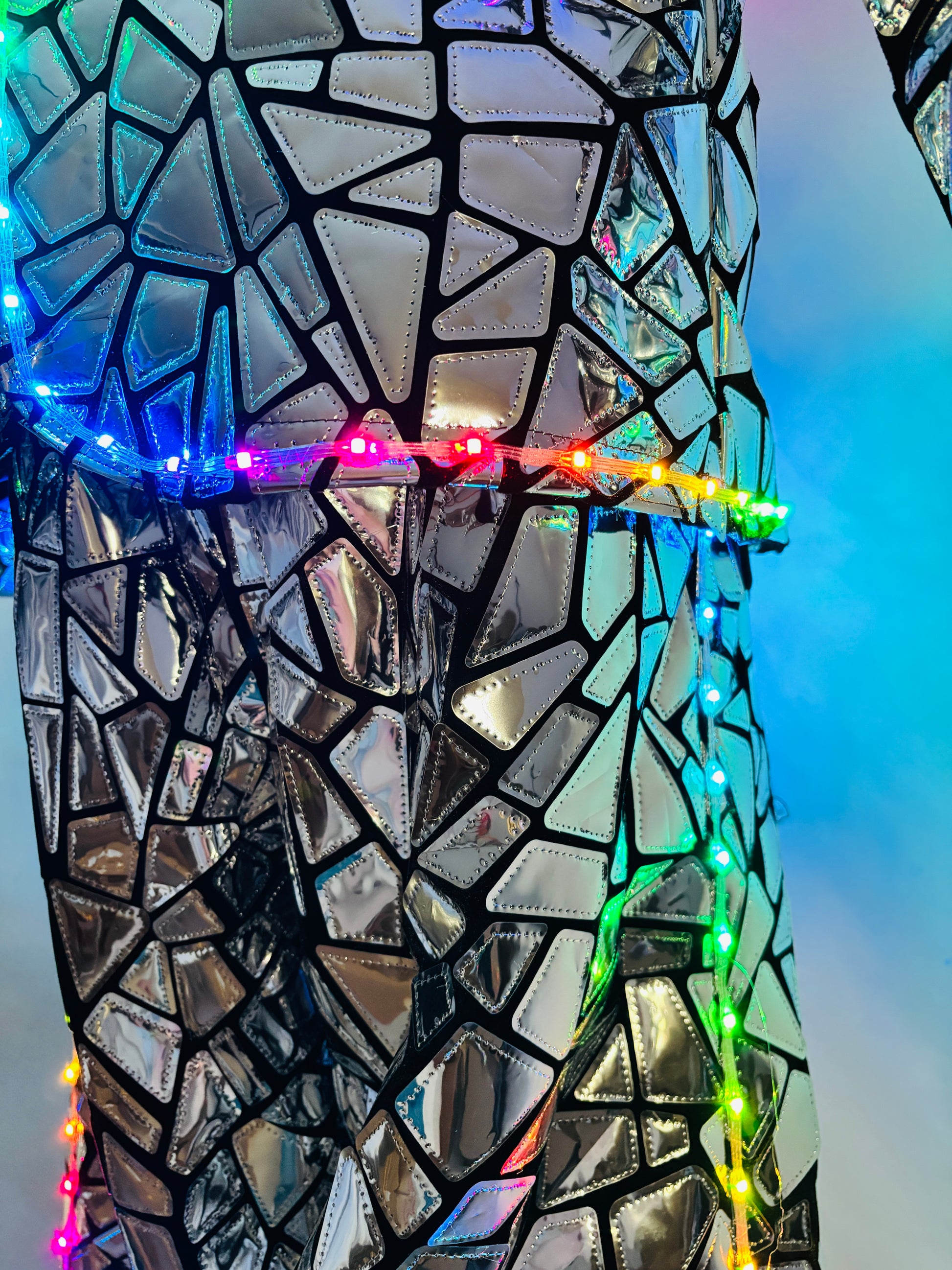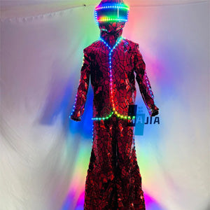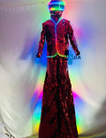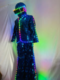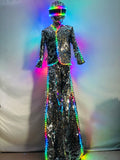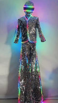 Silver LED Shiny Mirror Sequins Costume Lighting Special Design Qualified Sequins Outfit Stage Show DJ Bar Party Performance