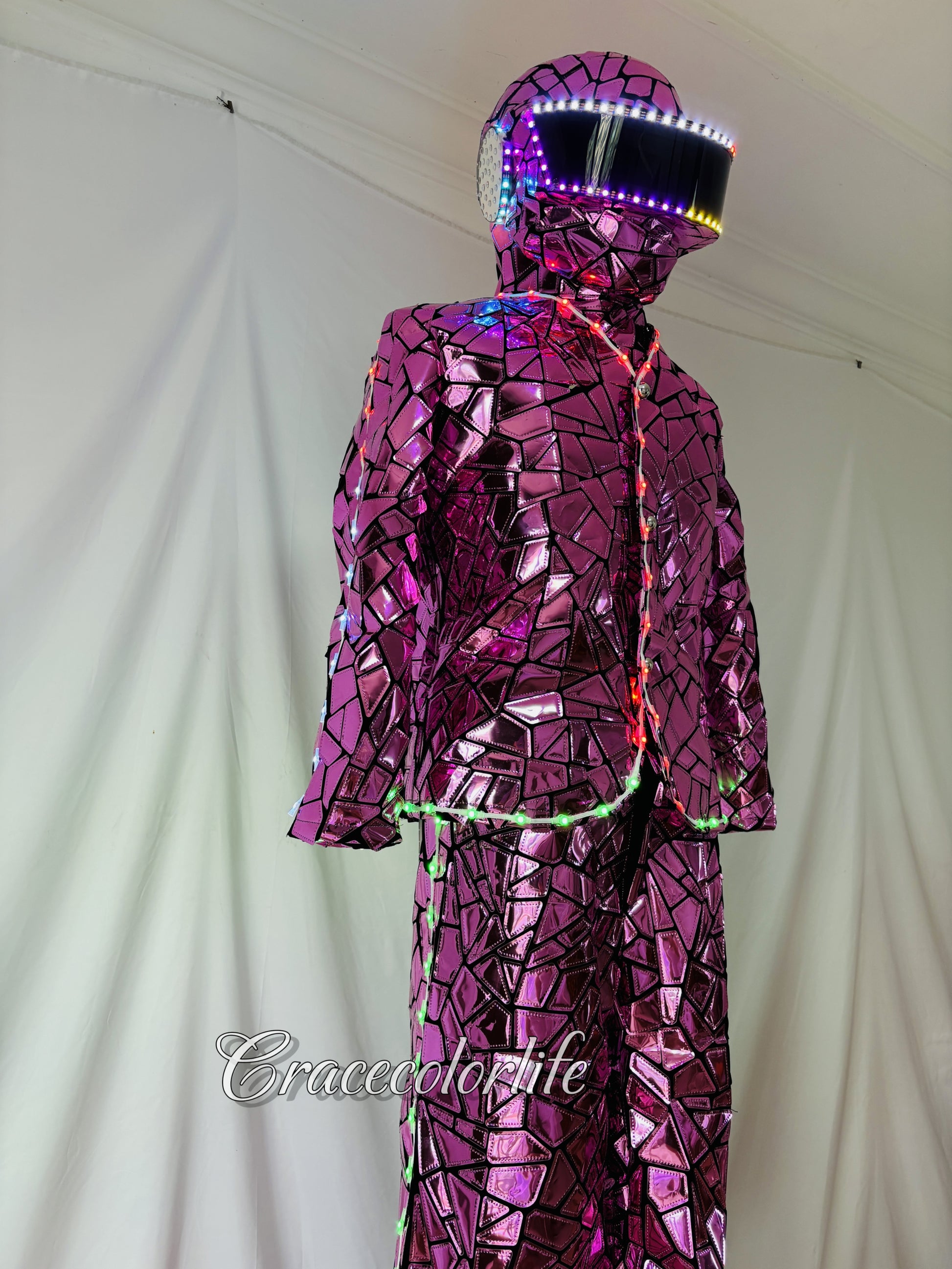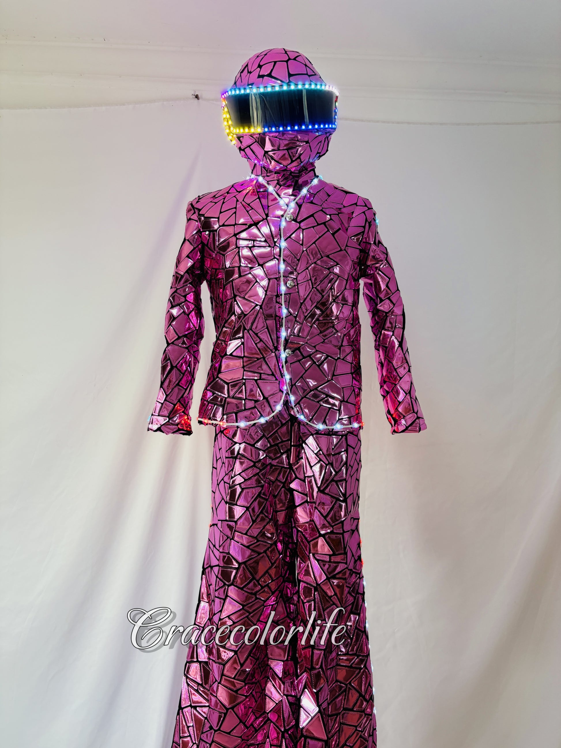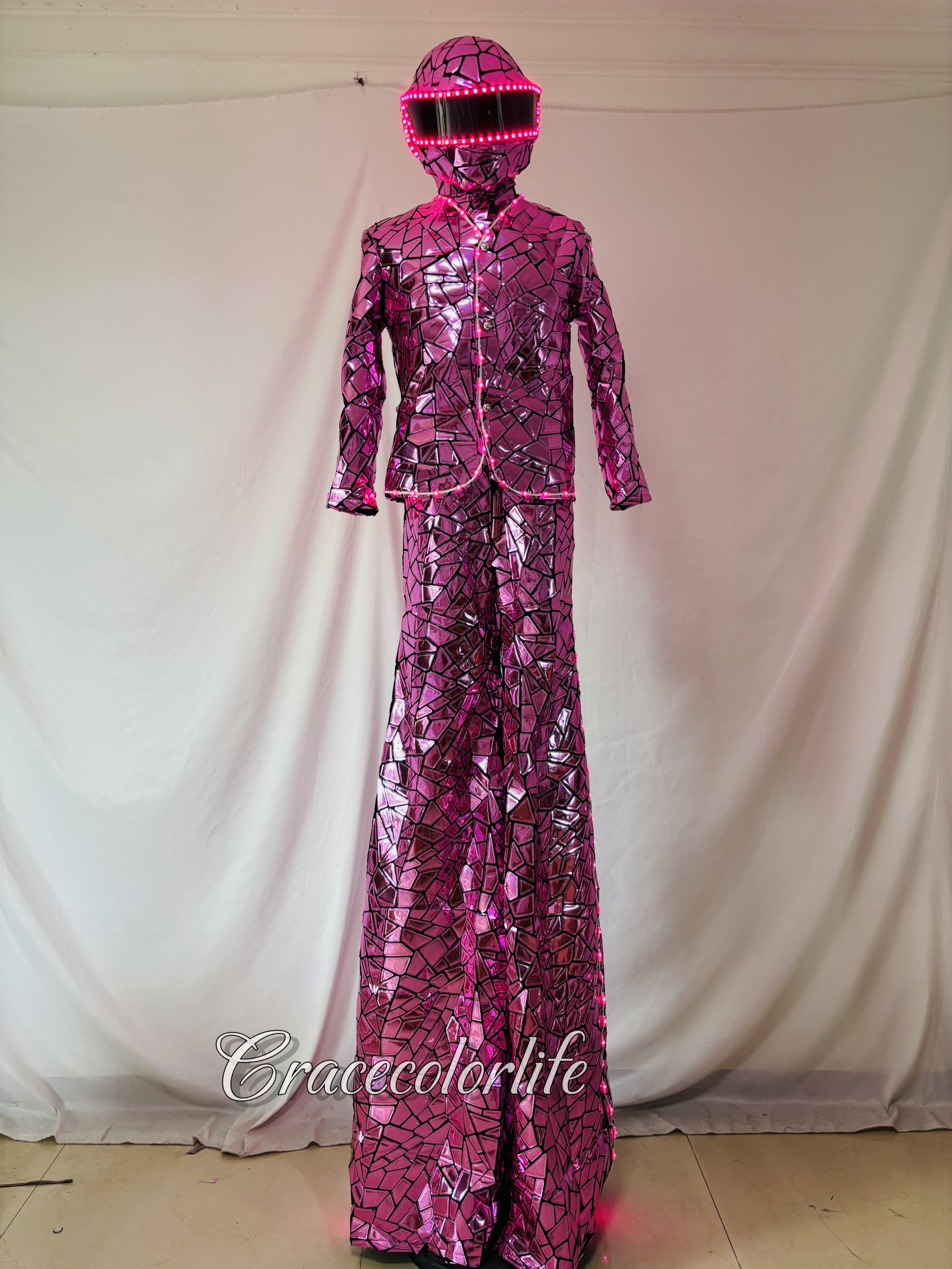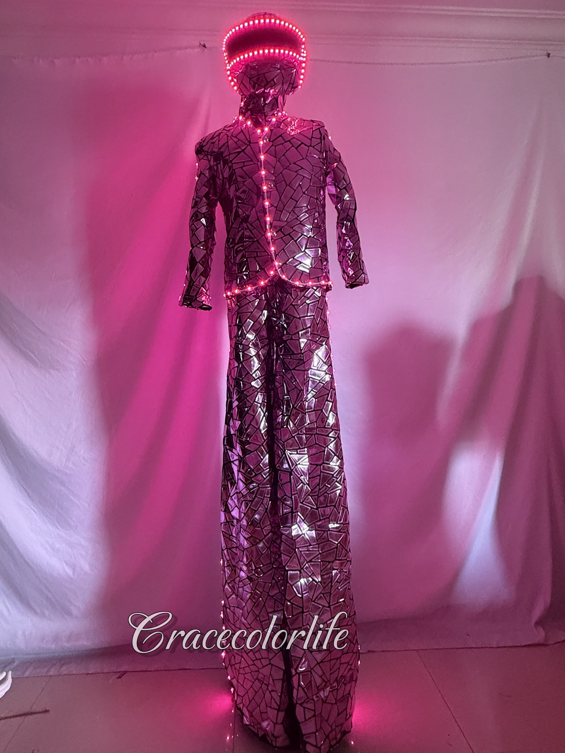 Earthradius LED Stilt Walker Mirror Men Robot Costume Pink Glass(LED MIRROR 2)