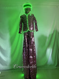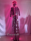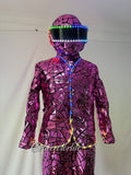 Silver LED Shiny Mirror Sequins Costume Lighting Special Design Qualified Sequins Outfit Stage Show DJ Bar Party Performance