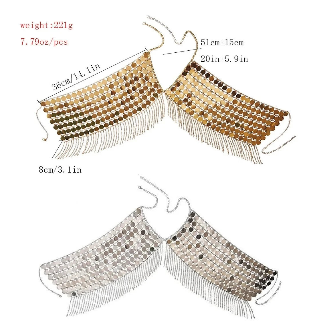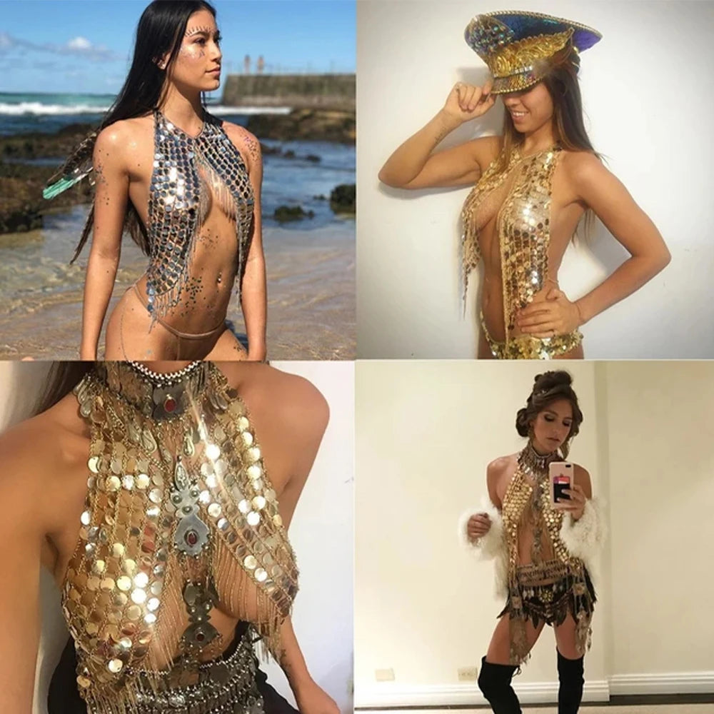 Festival Bling Plastic Sequined Crop Tops Women Sexy Metal Chain Tassel