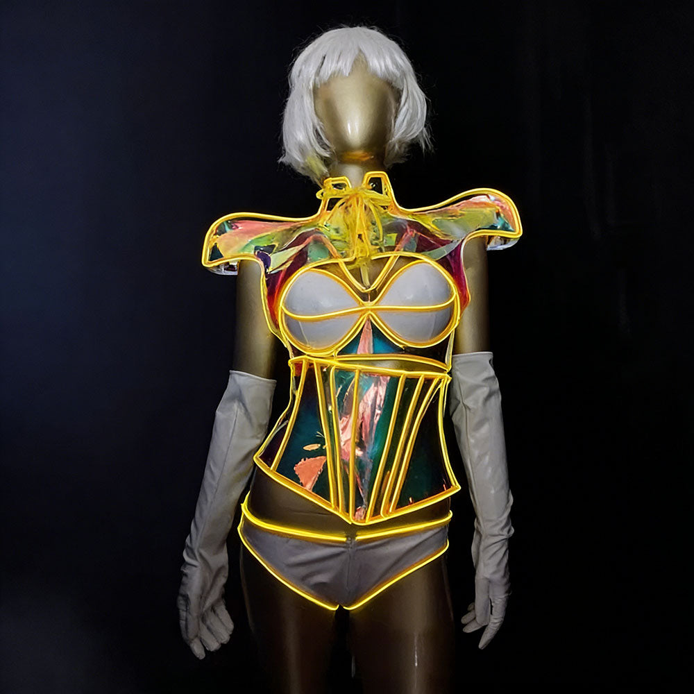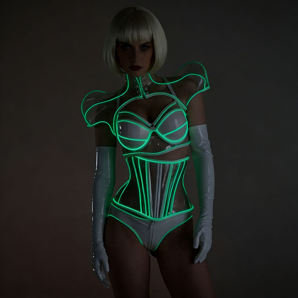 Step into the spotlight with our Future Combat Armor Wear, the ultimate luminous costume designed to electrify any night. Crafted with cutting-edge LED cold light technology, this outfit delivers a stunning, cool-toned glow that is both eye-catching and energy-efficient. Perfect for clubs, themed parties, raves, or cosplay events, it ensures you become the center of attention wherever you go.