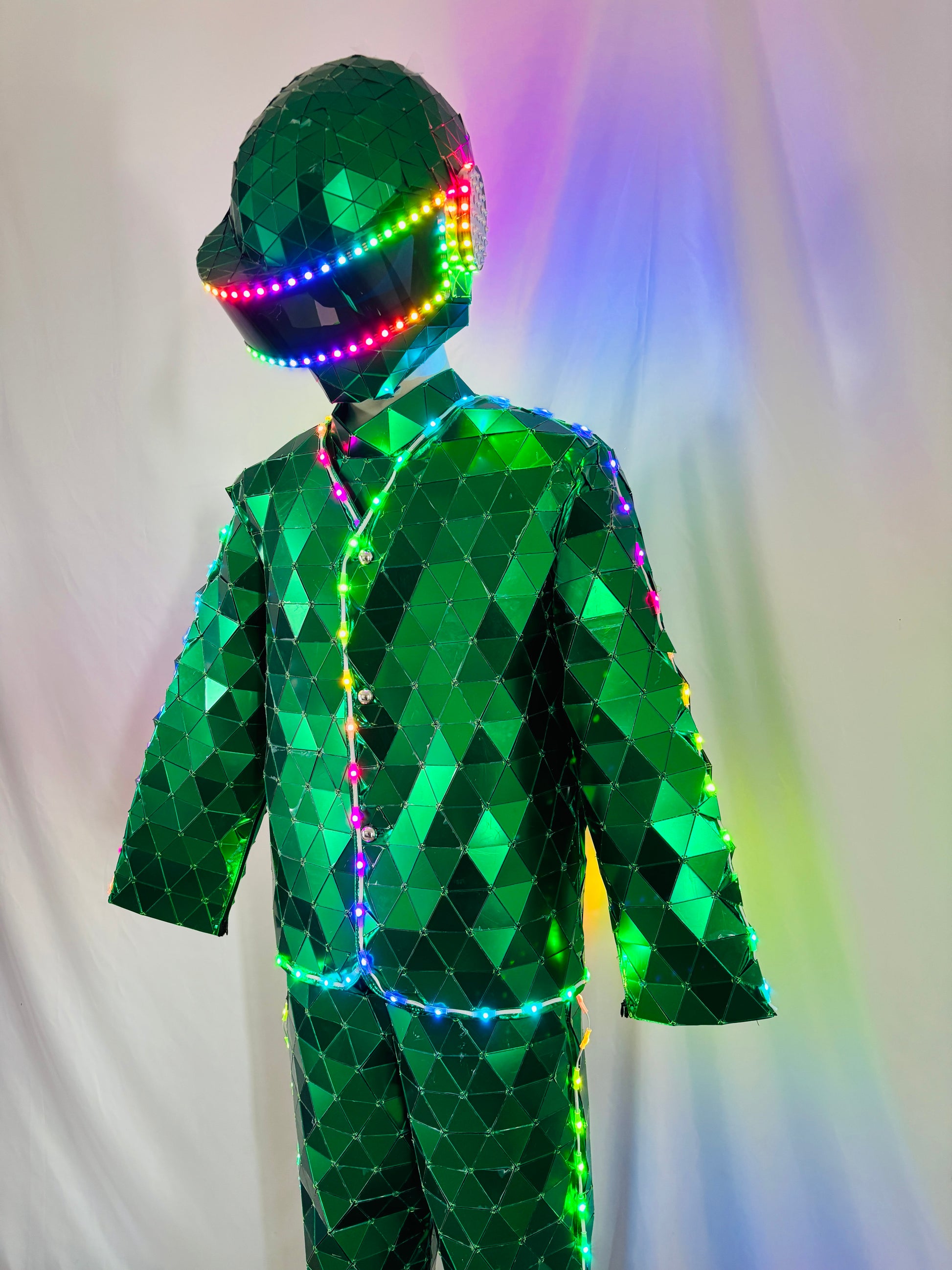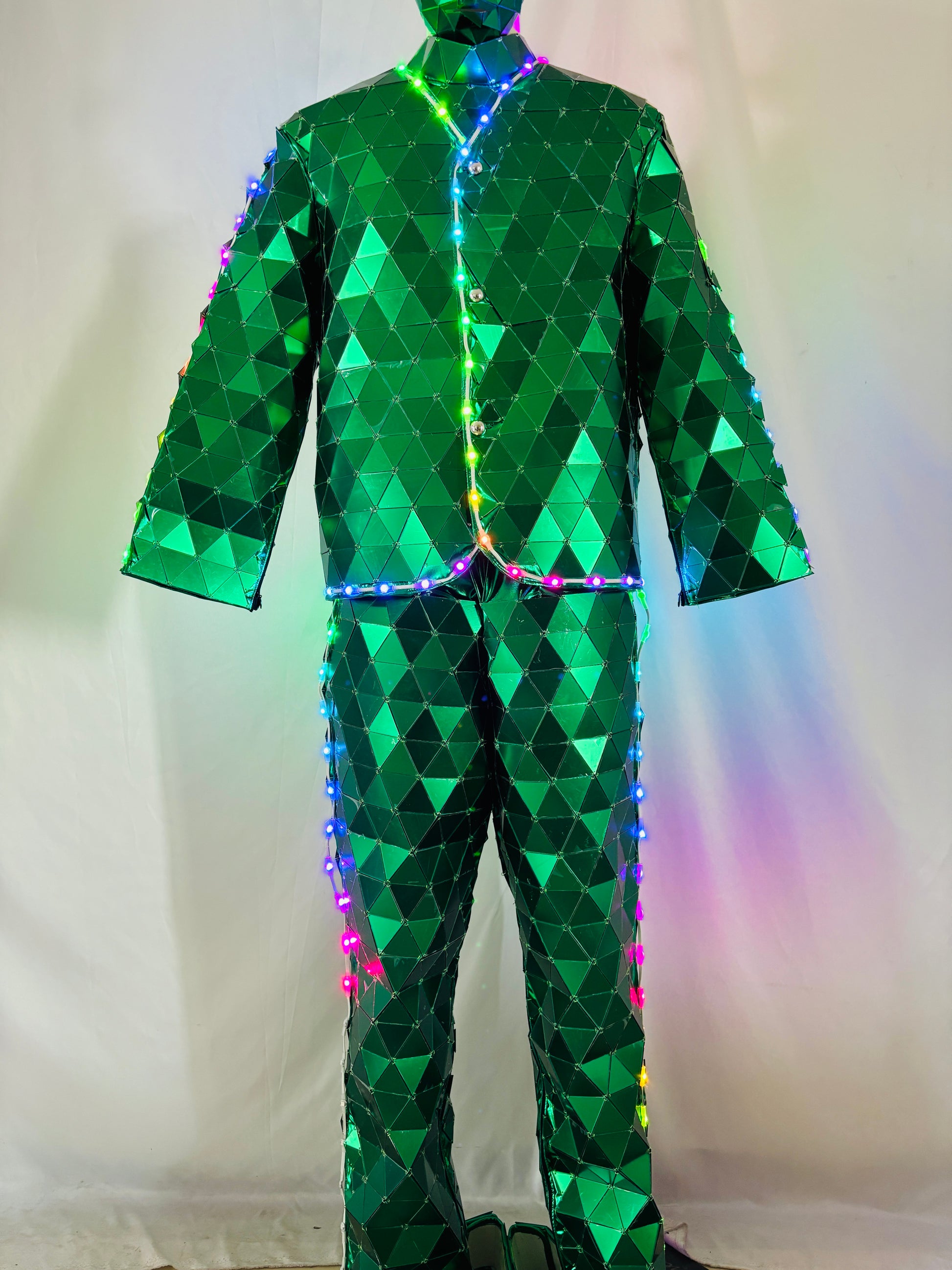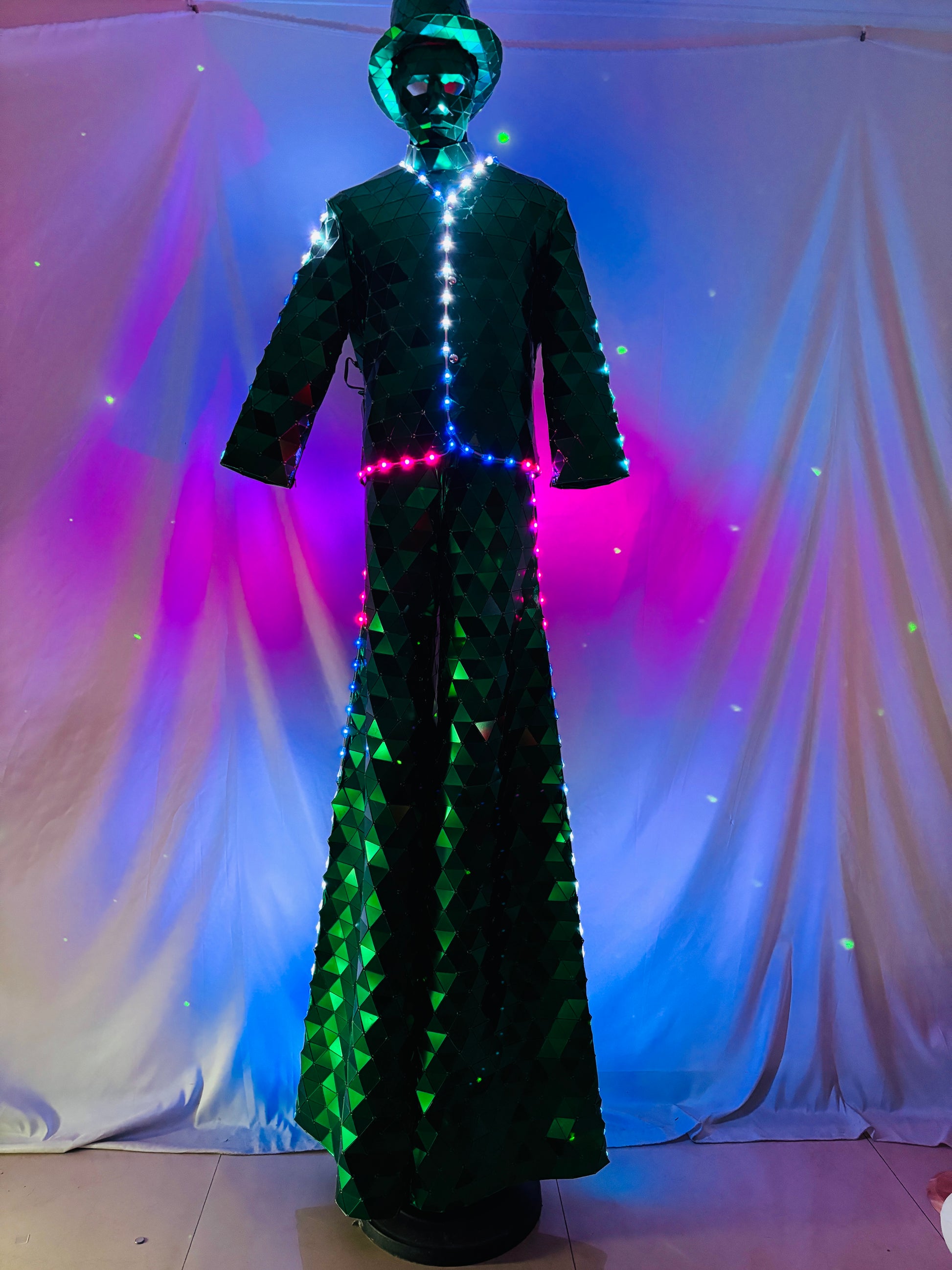 Green  Mirror  Costume Stilts Walker led Robot suit Costume