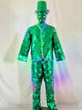 Green Mirror Costume Stilts Walker led Robot suit Costume