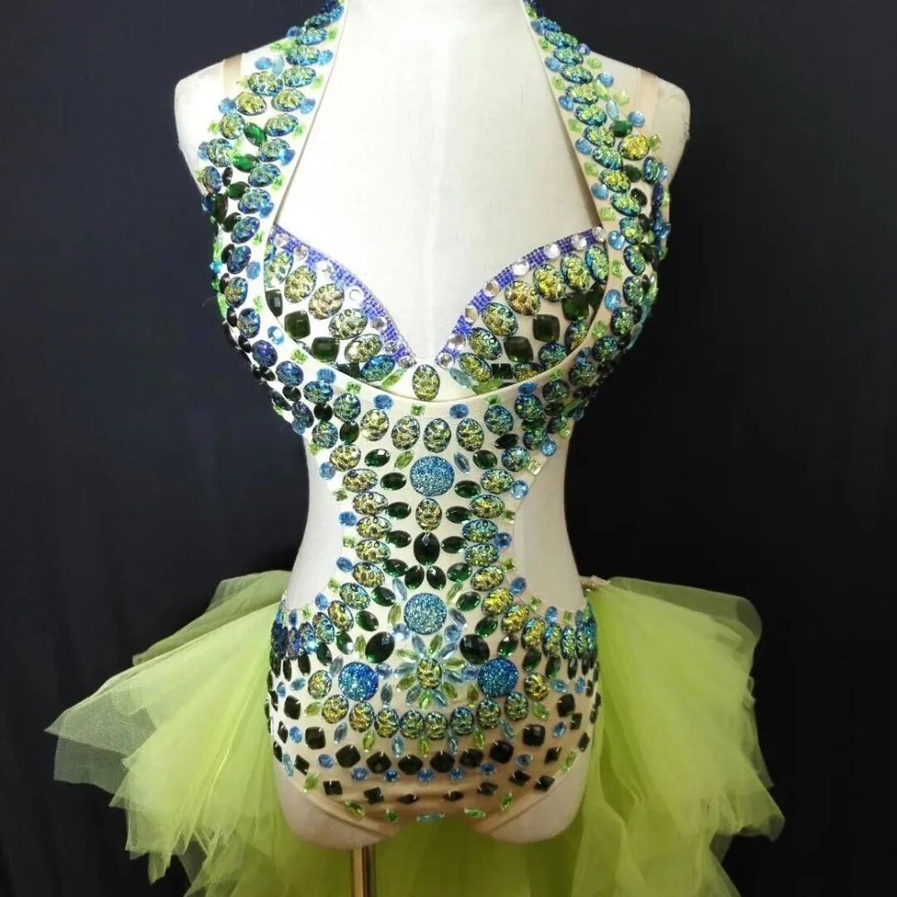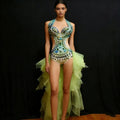 Handcrafted Sexy Gogo Outfit One-Piece Party Dress with Cutout Design Sparkling Rhinestones for Nightclub Bar Stage Performance
