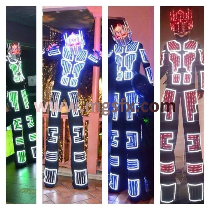 LED Light Stilts Walker Robot Suit Luminous Rangers Costumes Halloween Men Clothes Bar Party