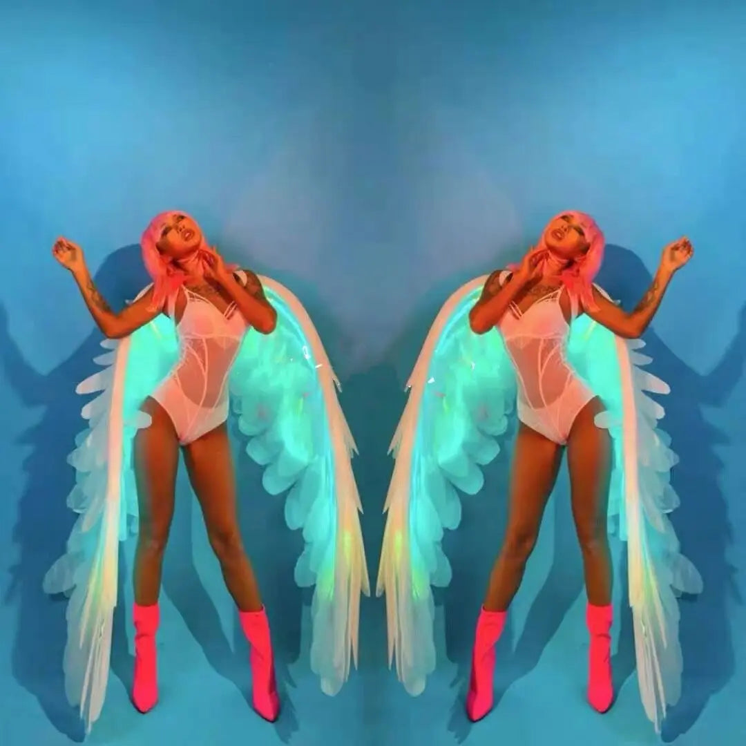 Add magic to any occasion with these LED Illuminated Feather Wings, a stunning accessory that transforms ordinary costumes into extraordinary visions. Perfect for Halloween angel outfits, stage performances, wedding photoshoots, and themed events, these wings combine ethereal feather design with soft LED lighting to create a dreamy glow. Lightweight and easy to secure with adjustable straps, they allow for graceful movement while capturing attention. Whether you're performing, celebrating, or posing for photos, these wings ensure you radiate elegance and fantasy.