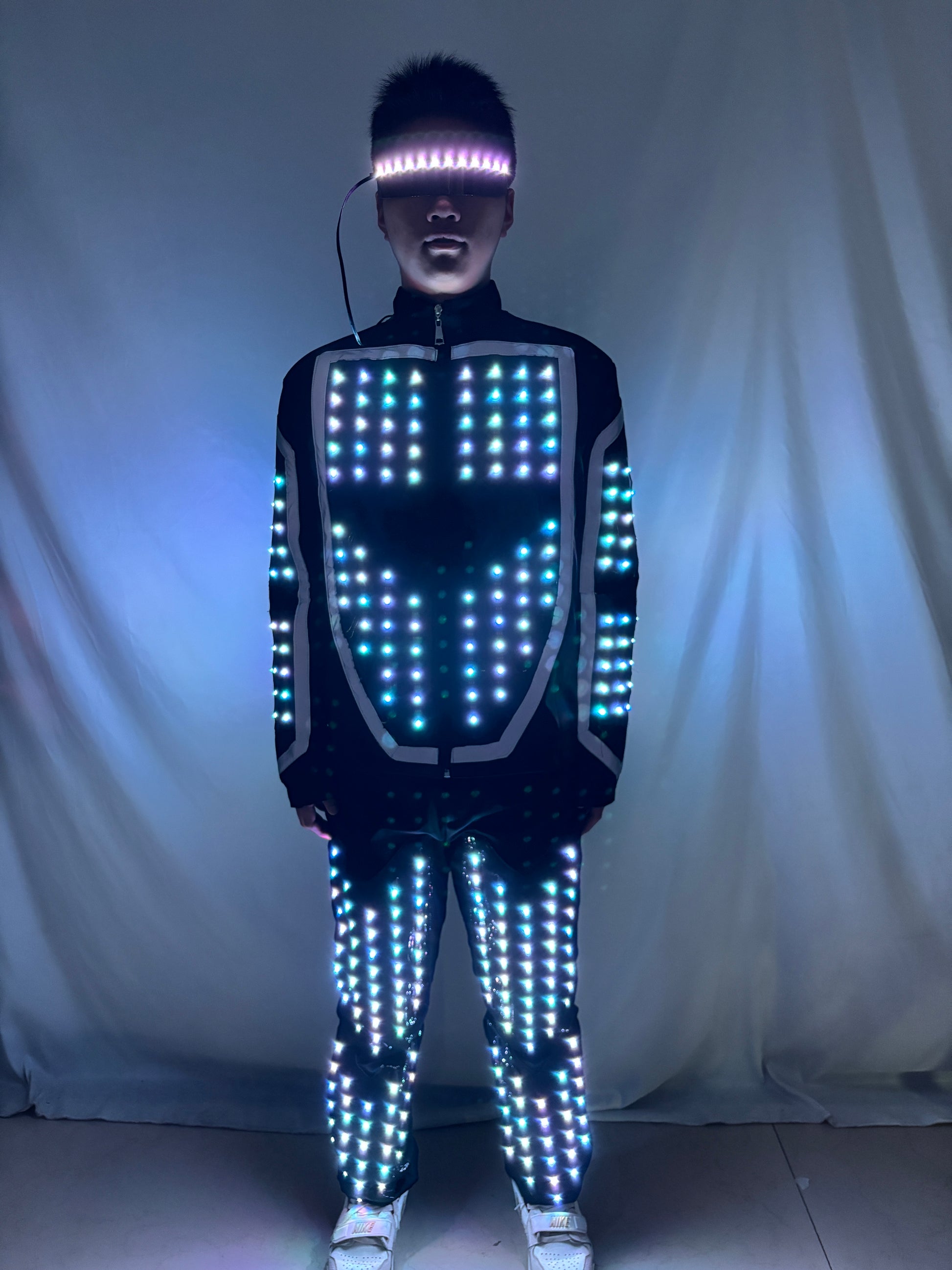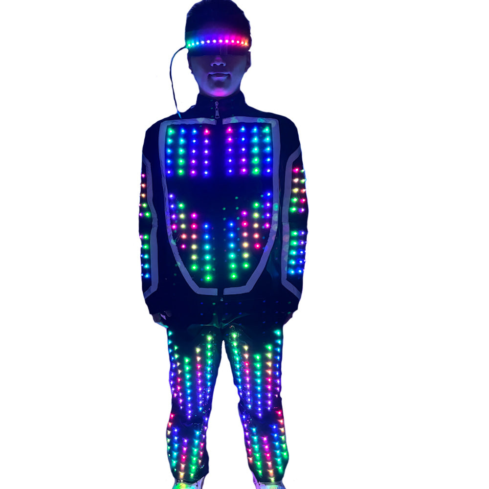 Full Color LED Costume Men's Bar Hosting Luminous Clothing Shuffle Dance Suit for Halloween Celebration Party Show