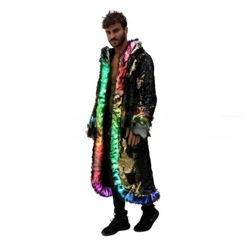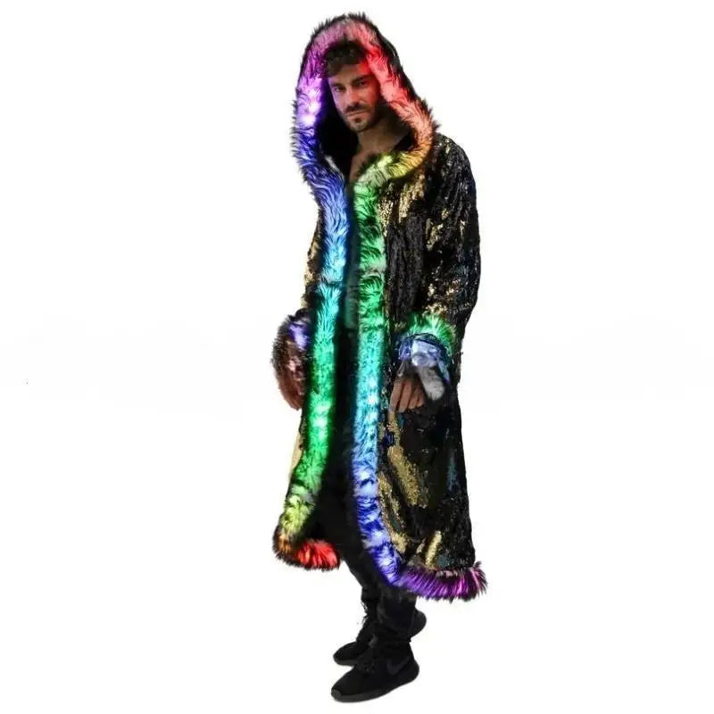 Mens LED Faux Fur Coat Male Lighting Up Costume Gogo Dance Party Jacket Warm Clothes Stage Performance Christmas Holiday Party
