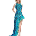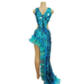 Mermaid Irregular Long Dress Lake Blue Laser Mirror Women (MJ-002)