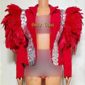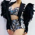 New Female Black Feather Costume Women Mirror Coat Sexy Performance Clothing Bikini Nightclub Dancing Outfit Entertainment Event