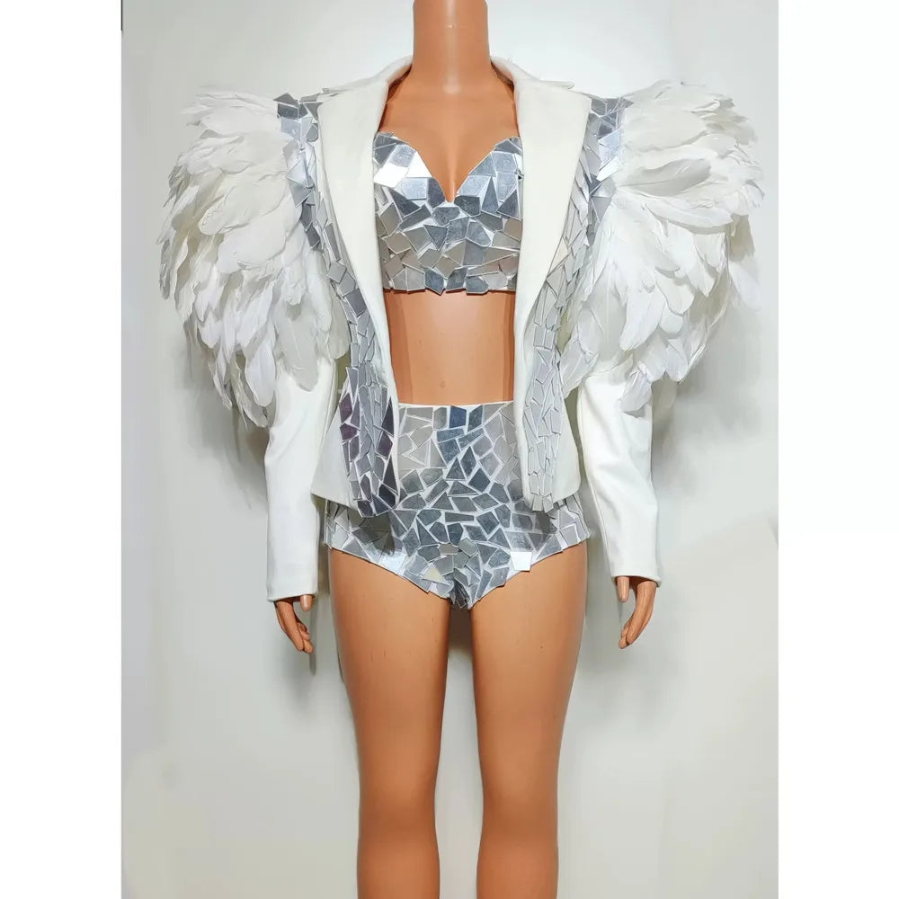 Unmatched Stage Presence: From the shimmer of the mirror-like surfaces to the sensual flow of the feathers, every element is crafted to amplify your performance. It’s the ideal choice for dancers, entertainers, and anyone ready to make an unforgettable entrance.