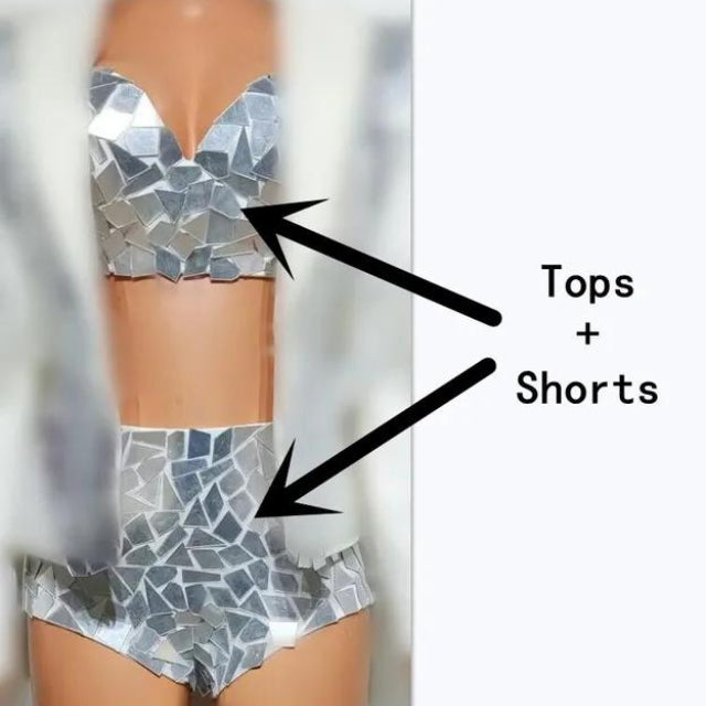 Daring & Versatile Design: The costume ingeniously combines a sexy bikini base with a striking mirror-coated or sheer illusion coat. This allows for versatile styling—wear it boldly for maximum impact or use the coat for a touch of dramatic mystique.