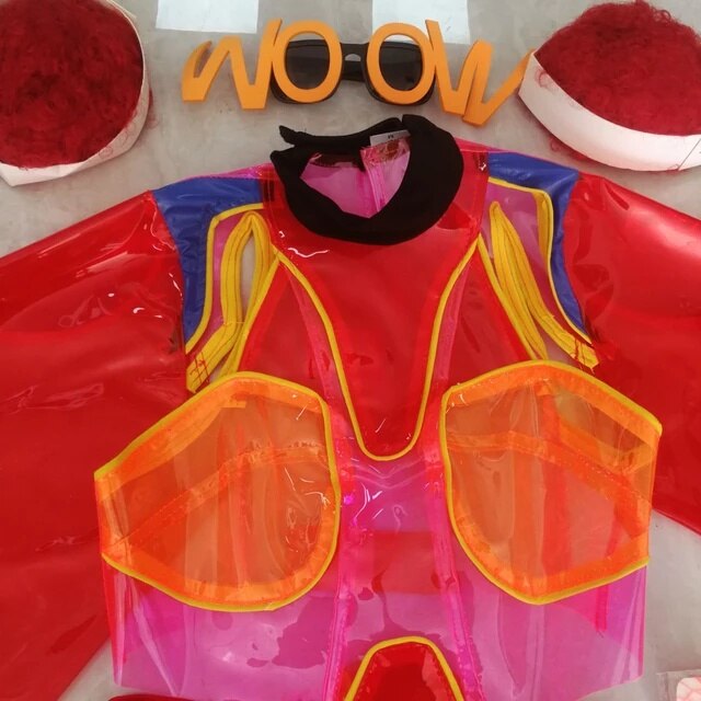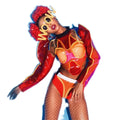 Nightclub Bar Female Singer DJ Jazz Dance Costumes Red Transparent Bodysuit