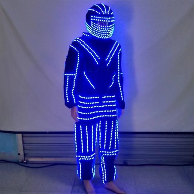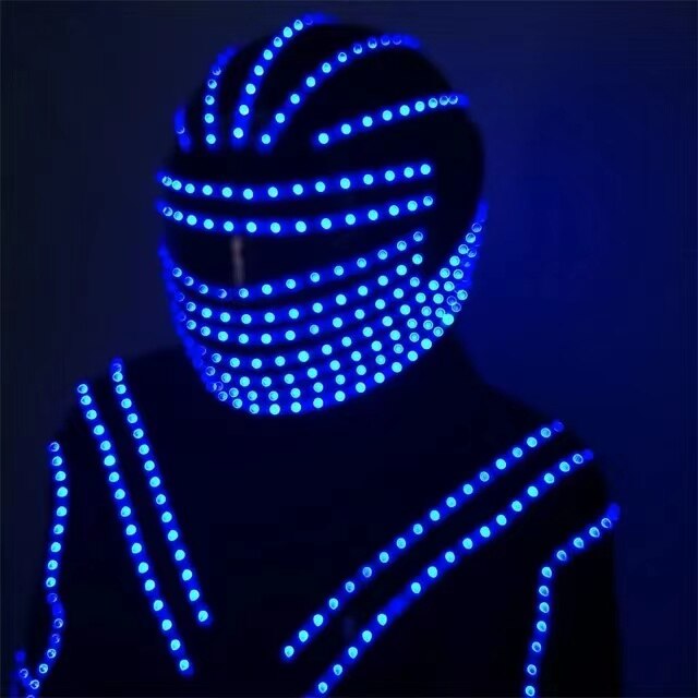 Nightclub Bar party LED Luminous Dance Costume Clothes With Led Helmet Glowing Robot Suit Stage Performance Clothing Dancewear