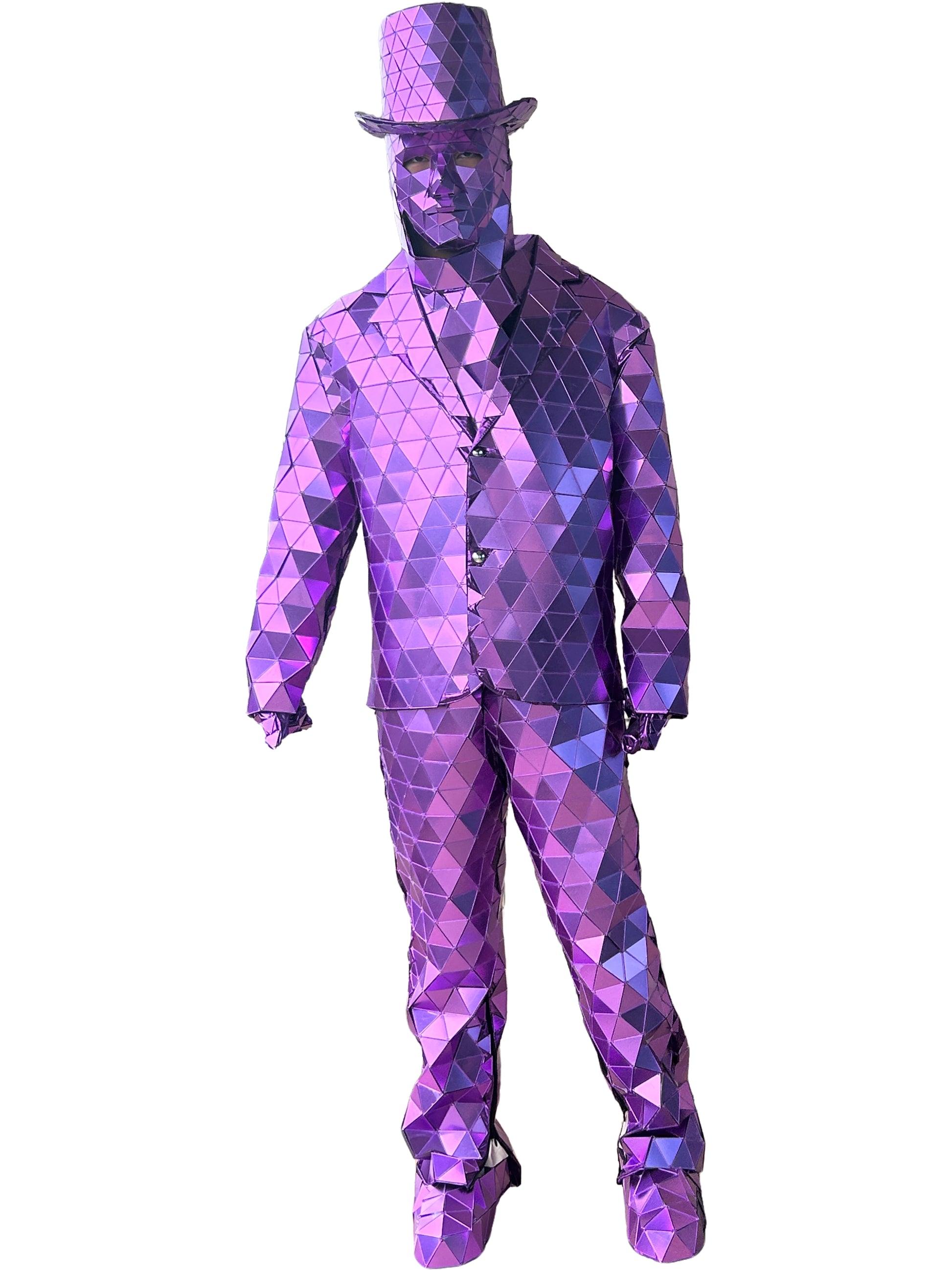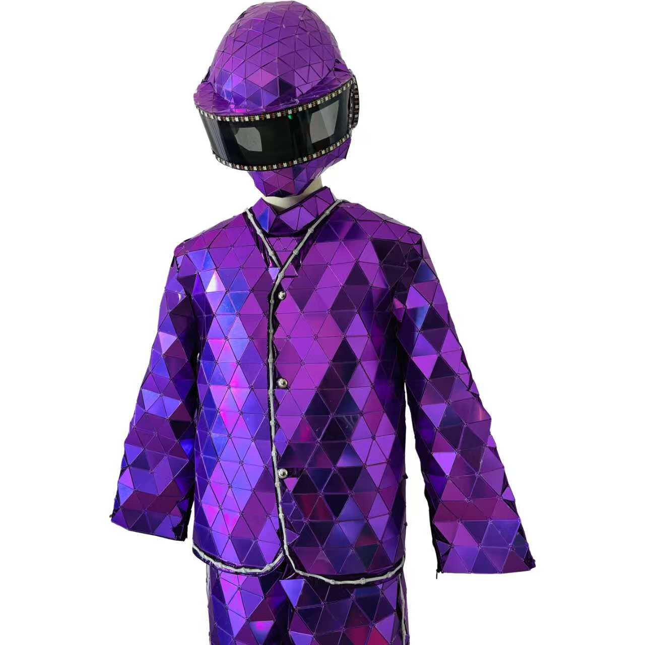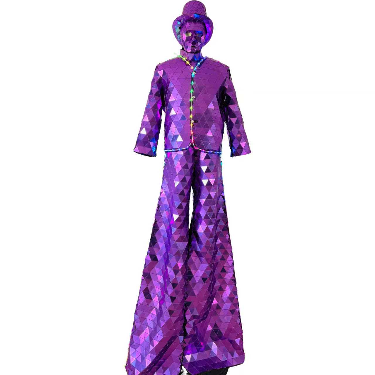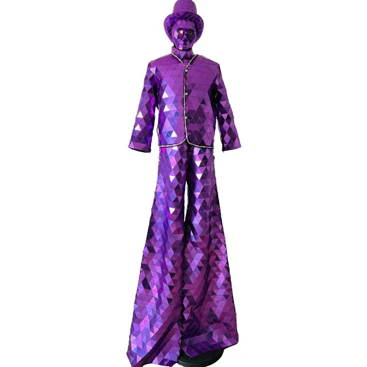 Purple Mirror Costume Stilts Walker led Robot suit Costume