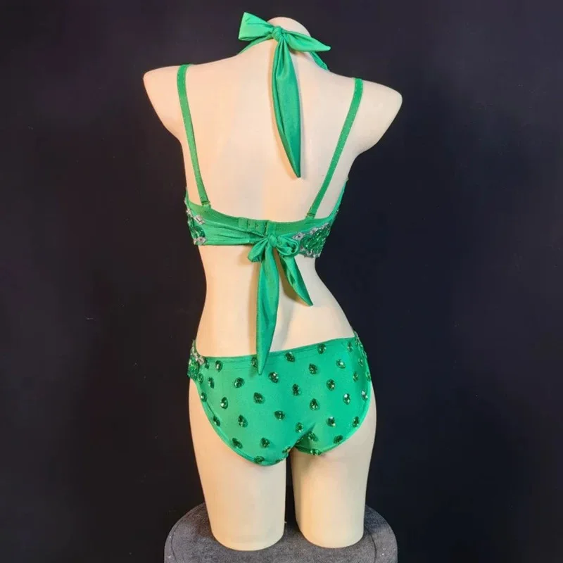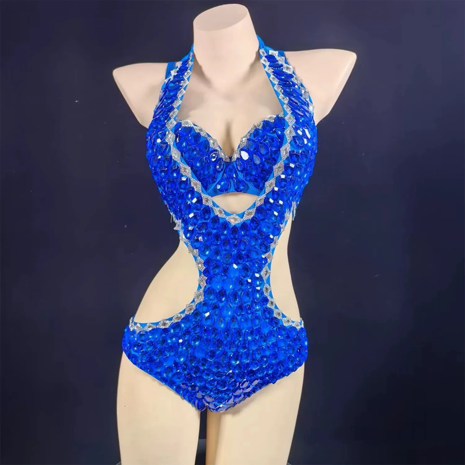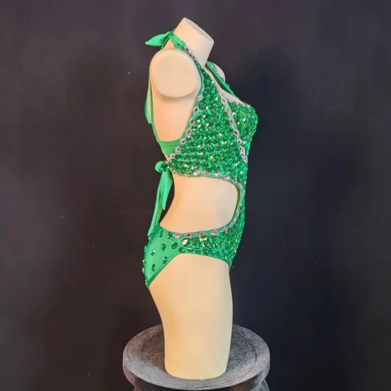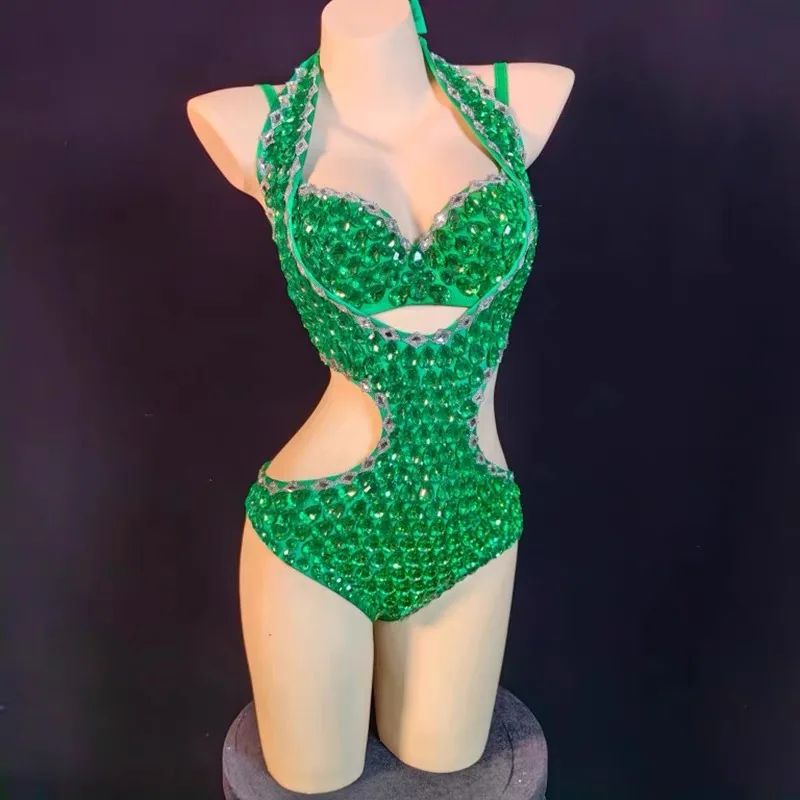 Sexy Rhinestone Bodysuit Women's Sparkling Leotard One-Piece Dress for Club DJ Stage Performance