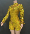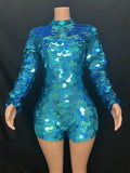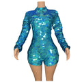 Shining Blue Laser Long Sleeve Sequin Bodysuit Contemporary Dance Competition Dress Women Stage Performance Costume Vestido de Baile