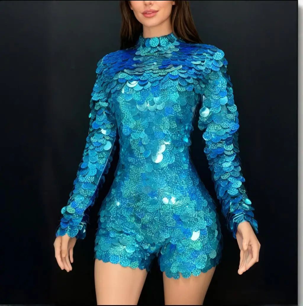 • Dazzling Laser Blue Effect: Advanced sequins create a dynamic, laser-like shimmer that appears to glow from within, ensuring you stand out under any stage lighting.