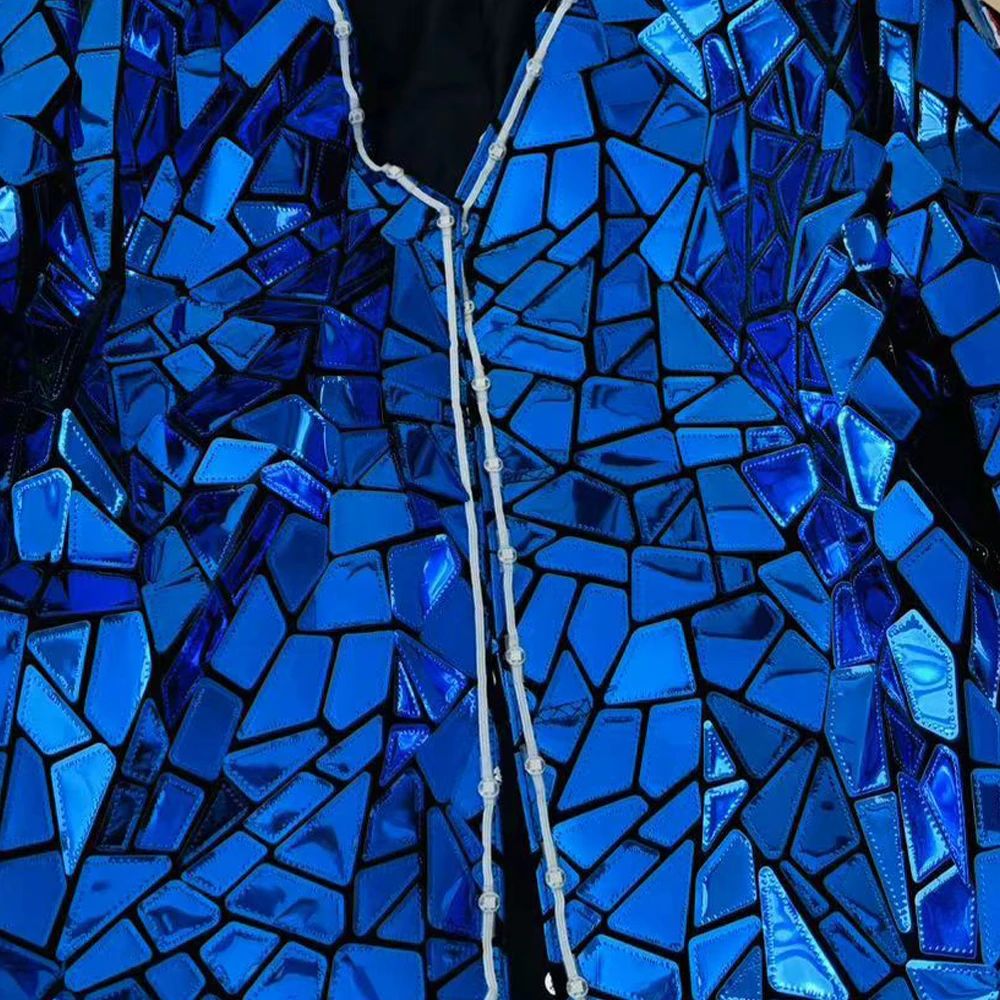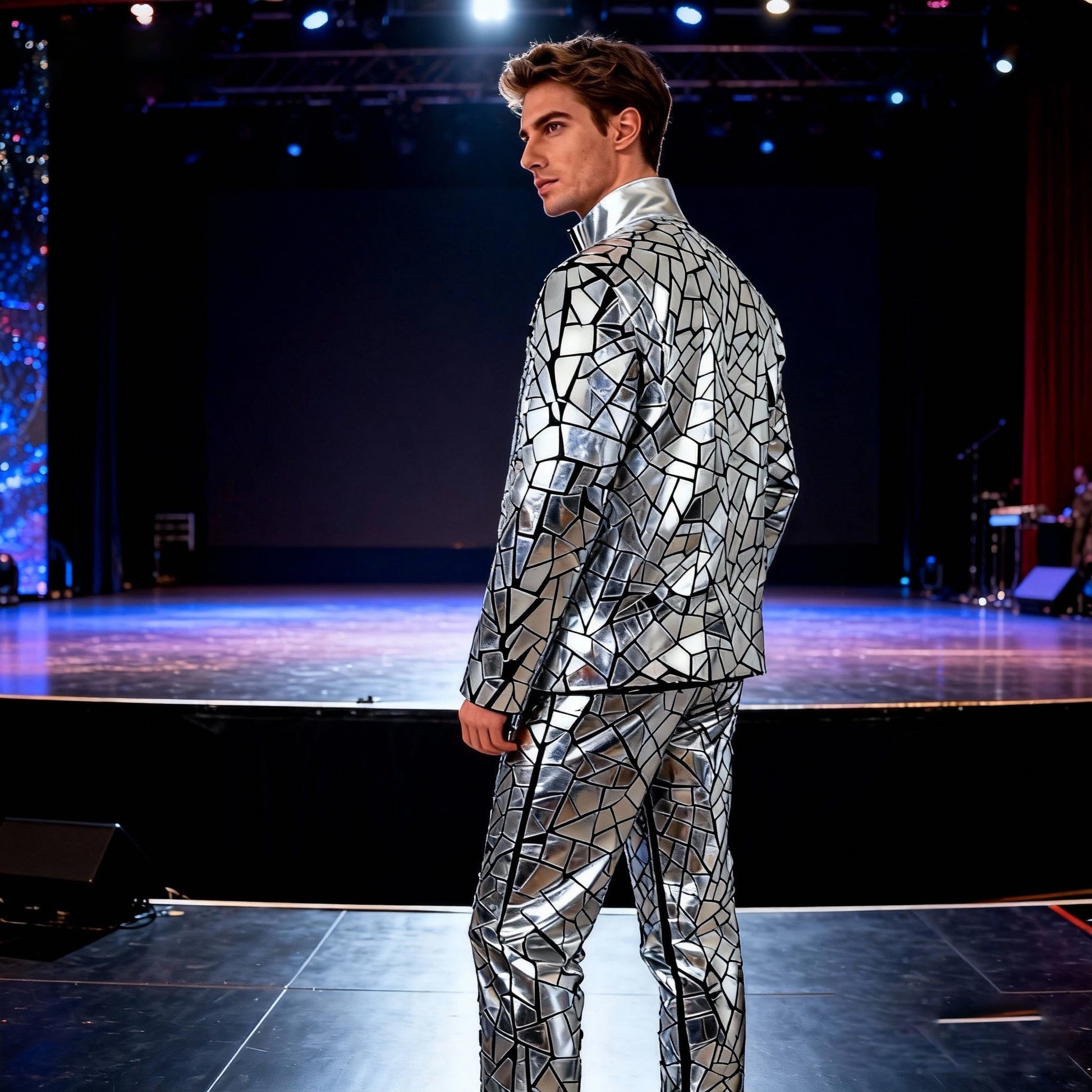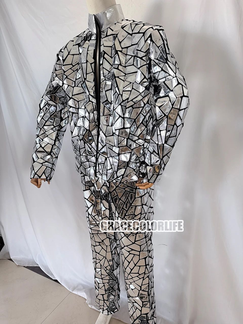 Silver Metallic Similar Mirror Material Suit Costume Clothes Stage Show DJ Dancing Kryoman Giant Clothing