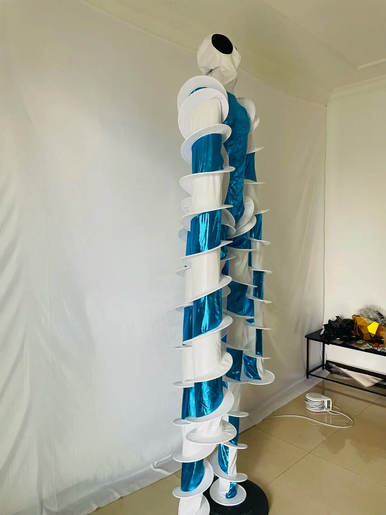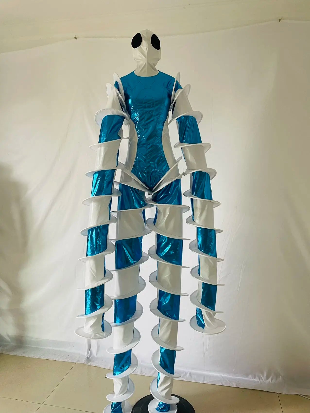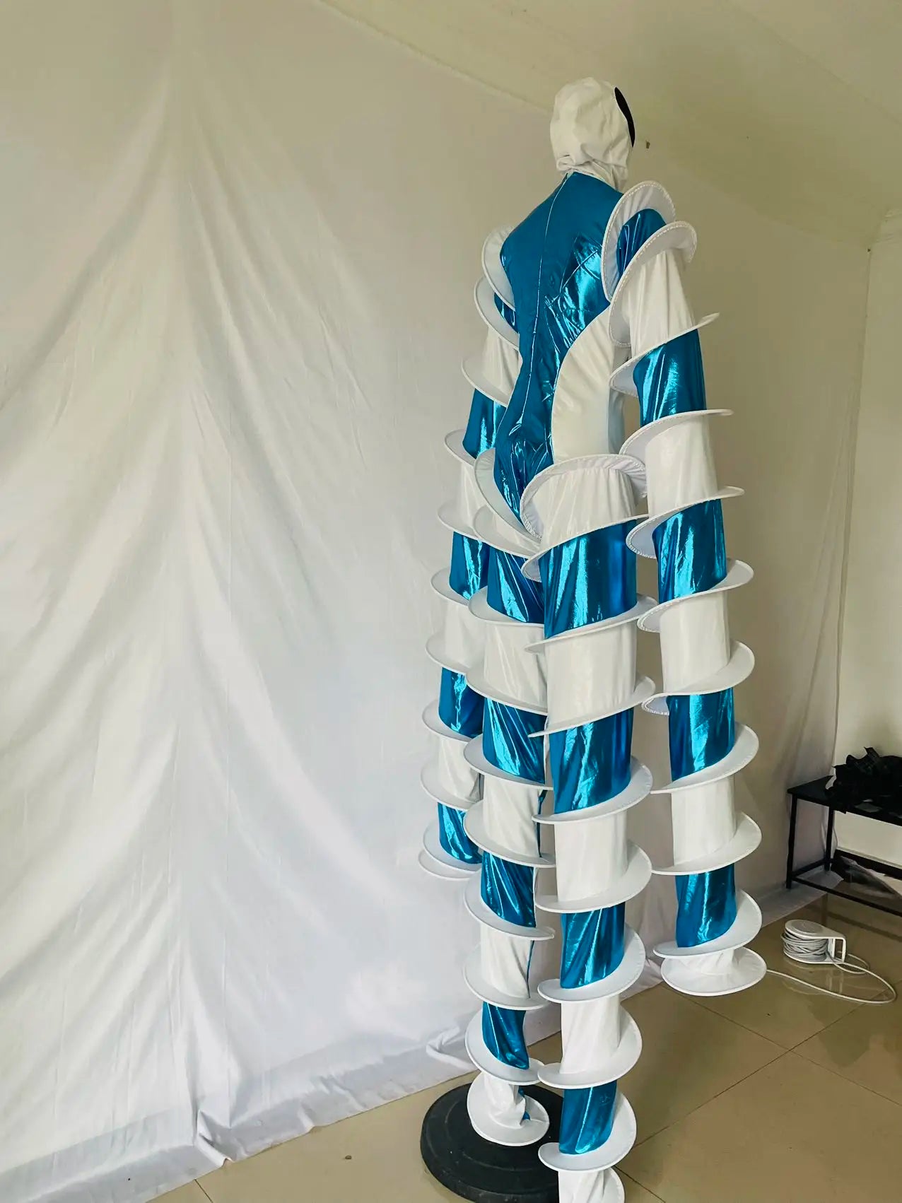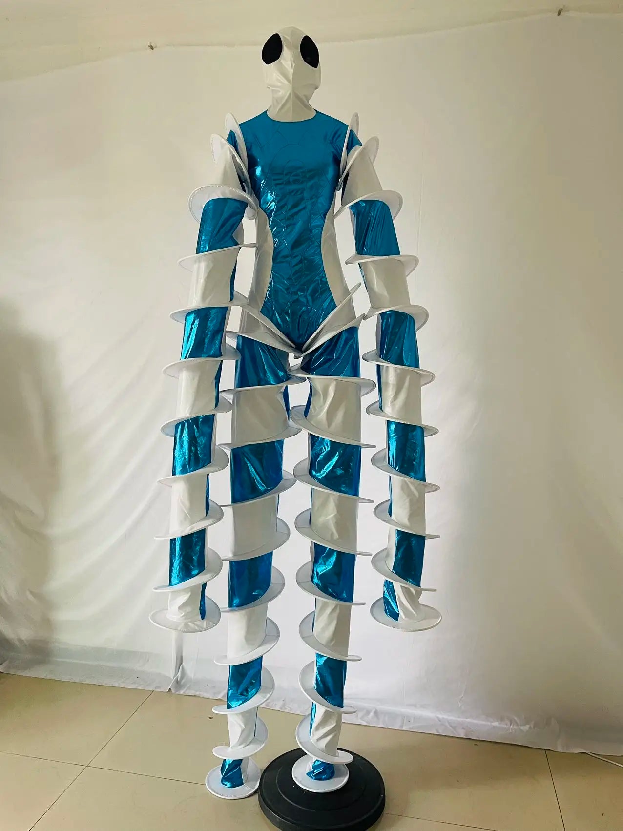 Stilts Walker Blue and white Halloween Events Holiday Rhinestone Dress Celebrate Party Show Dancer Show Mask Costume