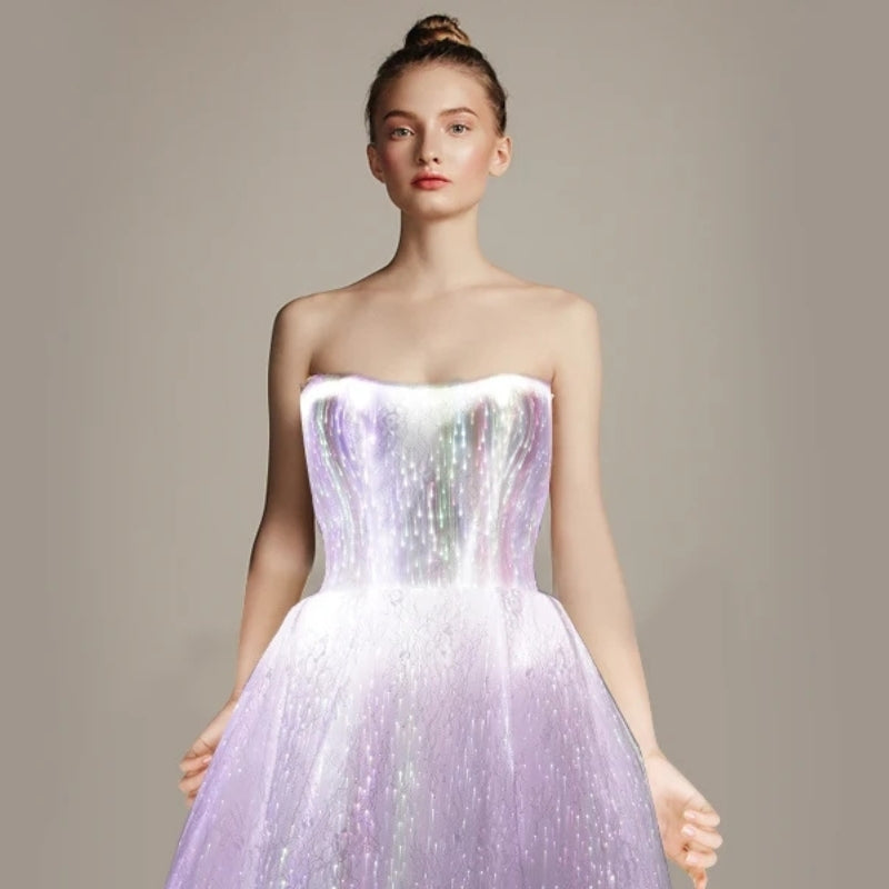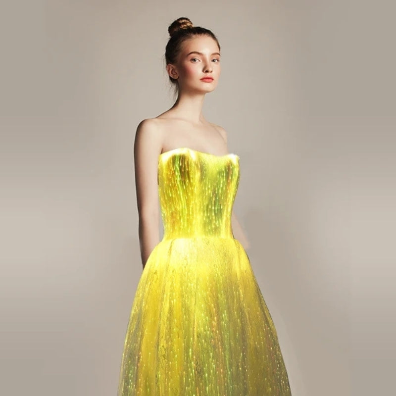 Step into a new dimension of glamour. This dress doesn't just glow—it responds, adapts, and empowers you to be the creator of your own light.